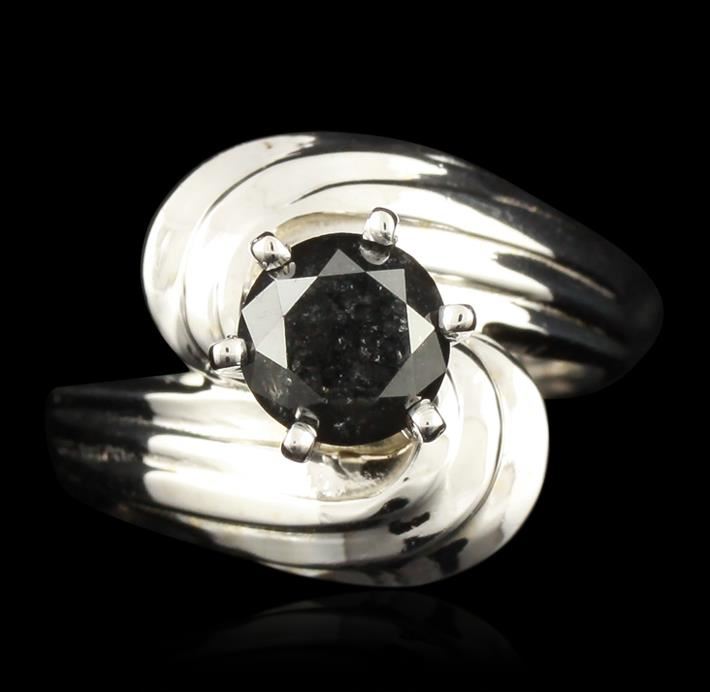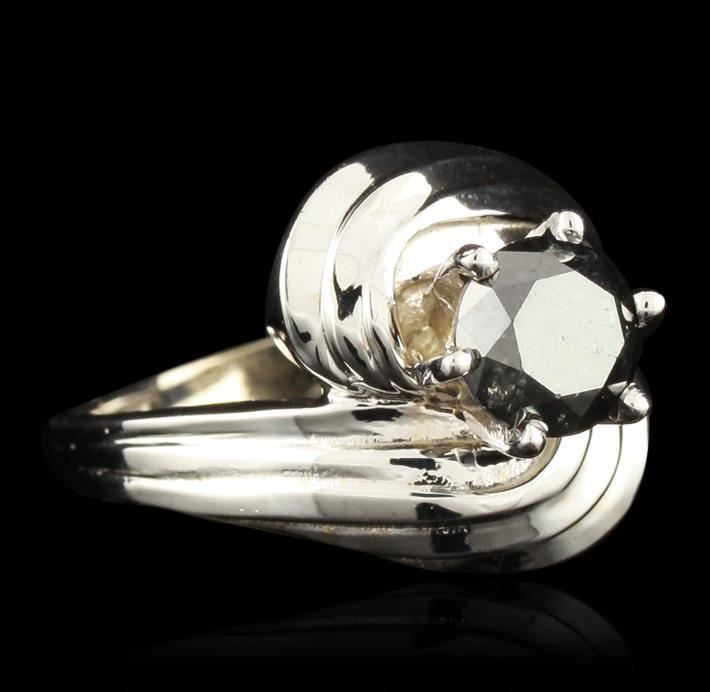 One polished, stamped, and electronically tested solid 14KT White Gold ring mounted with: 1 genuine round, brilliant cut diamond, condition is new, workmanship is excellent. Featuring 8.2 grams of 14KT White Gold, (1) black diamond with a total weight of 1.27ct. Total weight of diamonds 1.27ctw. AIGL Appraised at $3,400.00.