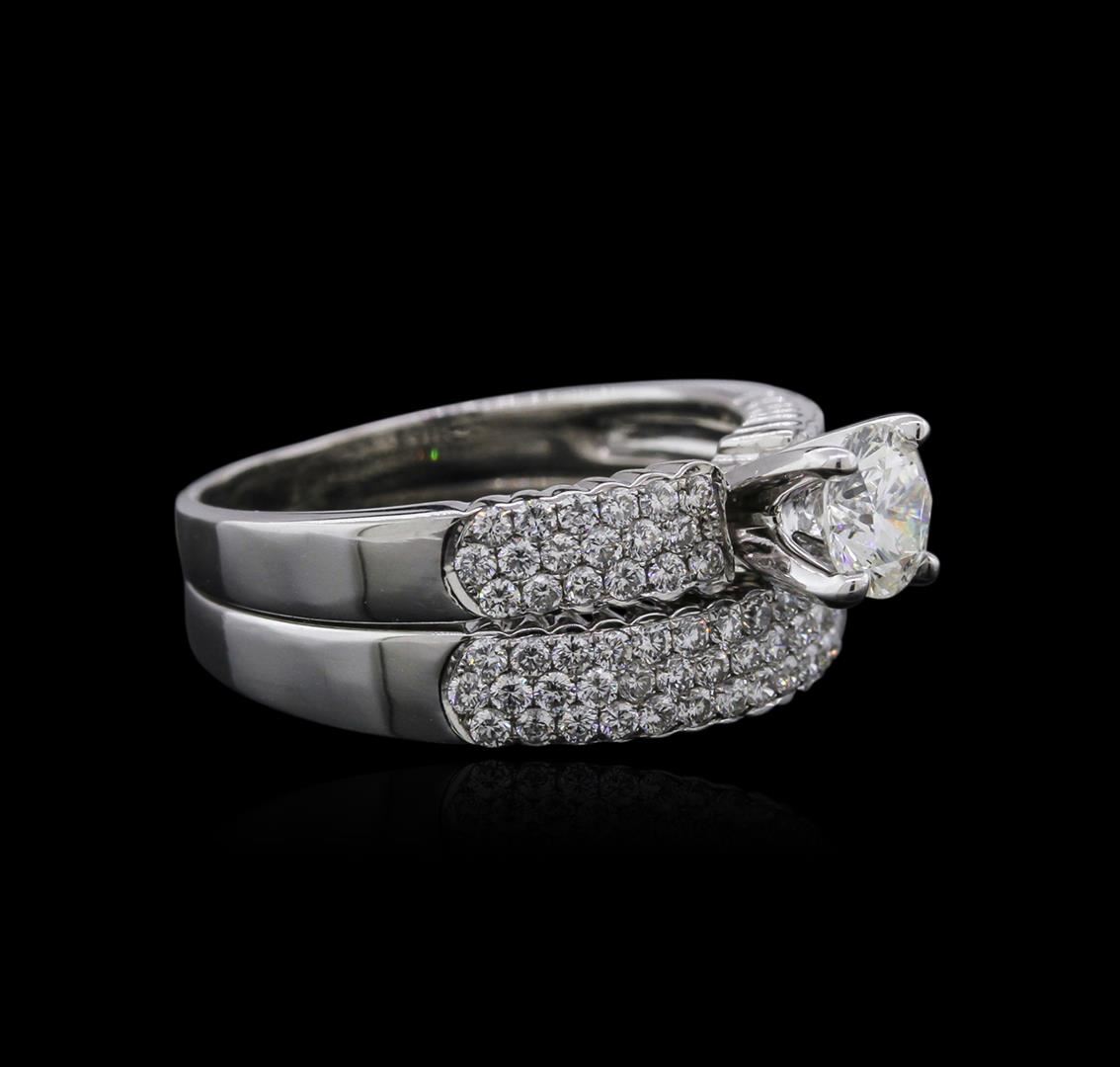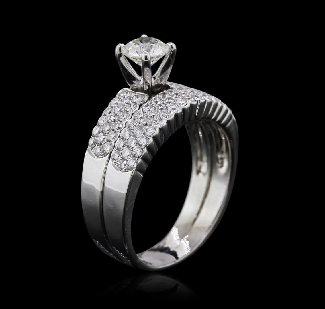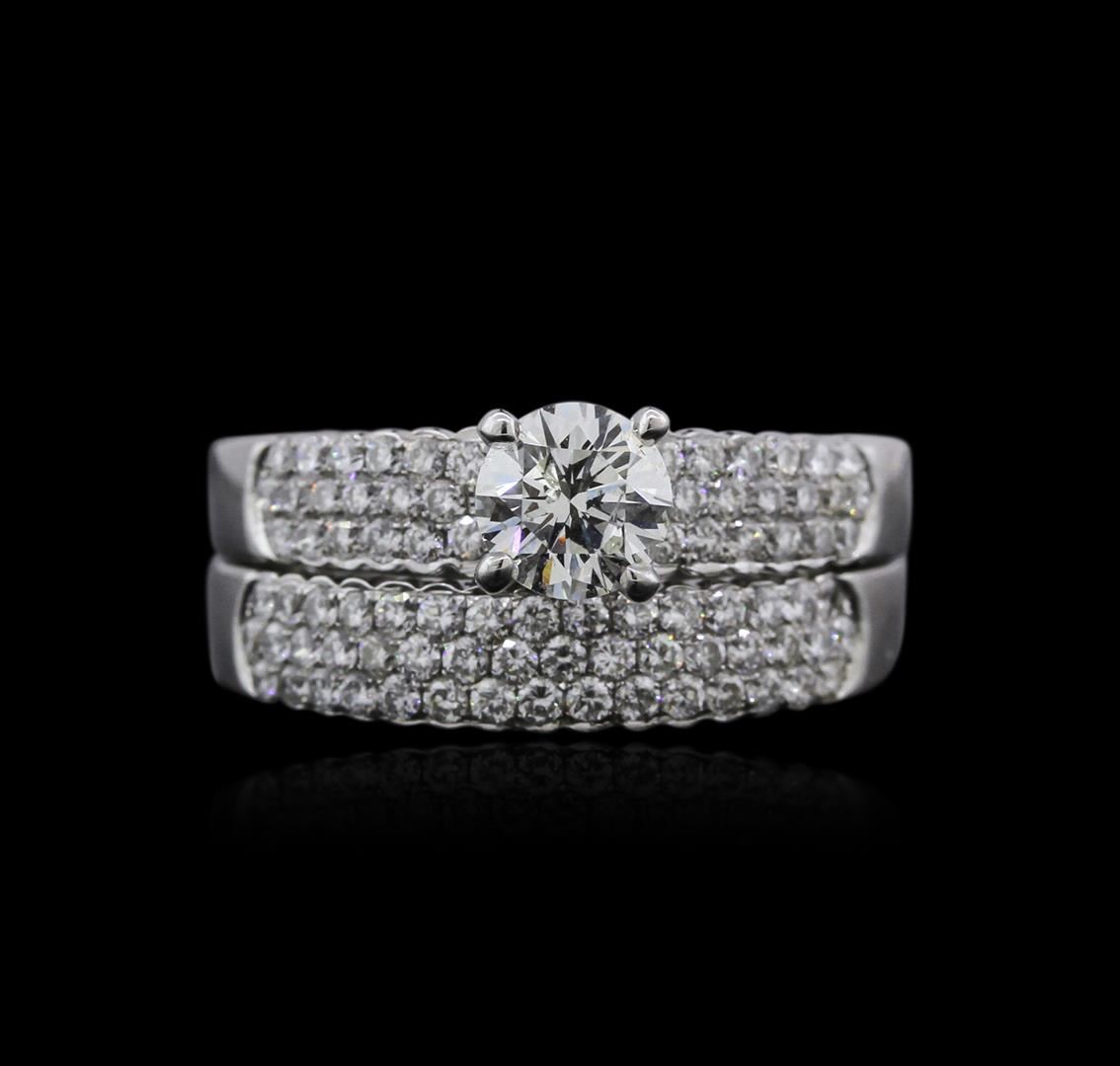 One electronically tested 14KT white gold ladies cast diamond engagement ring with a bright polish finish. Condition is new. Containing: One prong set round brilliant cut diamond, measuring 5.50 - 5.50 x 3.30mm (depth est.) approximate weight of 0.61ct. Clarity: SI-2. Color: I, Cut is Very Good. Eighty-Two prong set round brilliant cut diamonds, measuring 1.30 - 1.30 x 0.78mm (depth est.) approximate total weight of 82 Stones = 0.66ct. Clarity: SI-1 to SI-2. Color: H - J, Cut is Good. All diamonds are graded in the mounting, unless otherwise stated. Total Weight of Diamonds 1.27ct. Total Weight of Engagement Ring 7.90 grams. GGL Appraised at $6,210.00.