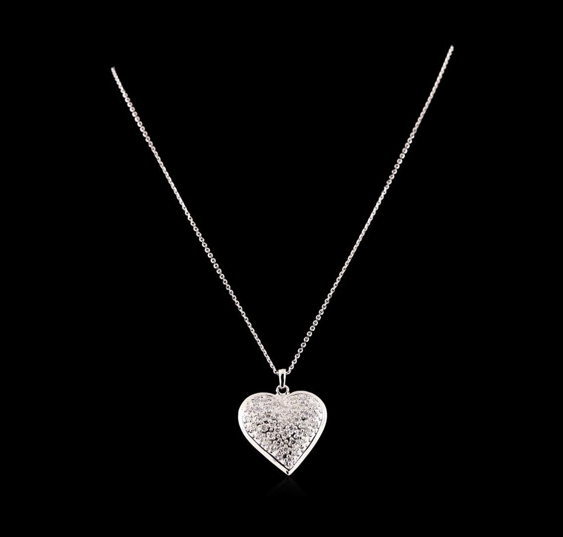 One electronically tested 14KT white gold ladies cast diamond pendant & chain 18.3" long, cable link with a lobster claw clasp with a bright polish finish. Identified with markings of "14K". Condition is new. Containing: Forty-Four prong set round brilliant cut diamonds, measuring 2.00 - 2.00 x 1.20mm (depth est.) approximate total weight of 44 Stones = 1.29ct. Clarity: SI-2 to I-1. Color: J - K, Cut is Good. All diamonds are graded in the mounting, unless otherwise stated. Total Weight of Diamonds 1.29ct. Total Weight of Pendant & Chain 13.60 grams. GGL Appraised.