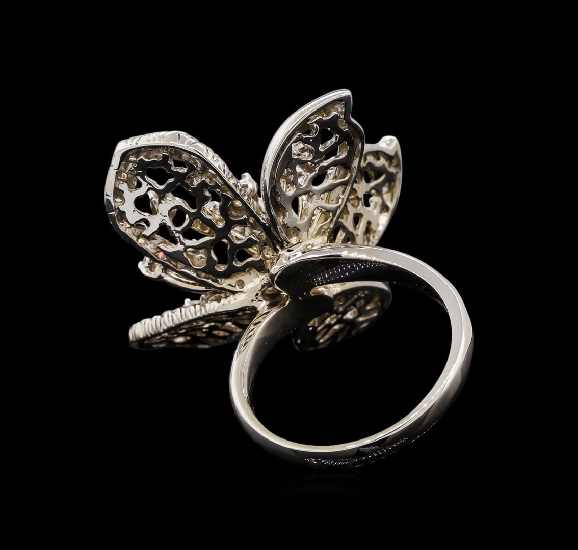 One electronically tested 14KT white gold ladies cast diamond ring with a bright polish finish. Identified with markings of "14K". Condition is new. Containing: Sixty-Six prong set round brilliant cut diamonds, measuring 2.00 - 1.50 x 1.05mm (depth est.) approximate total weight of 66 Stones = 1.29ct. Clarity: SI-1 to I-1. Color: I - J. All diamonds are graded in the mounting, unless otherwise stated. Total Weight of Diamonds 1.29ct. Total Weight of Ring 11.40 grams. GGL Appraised at $4,945.00.