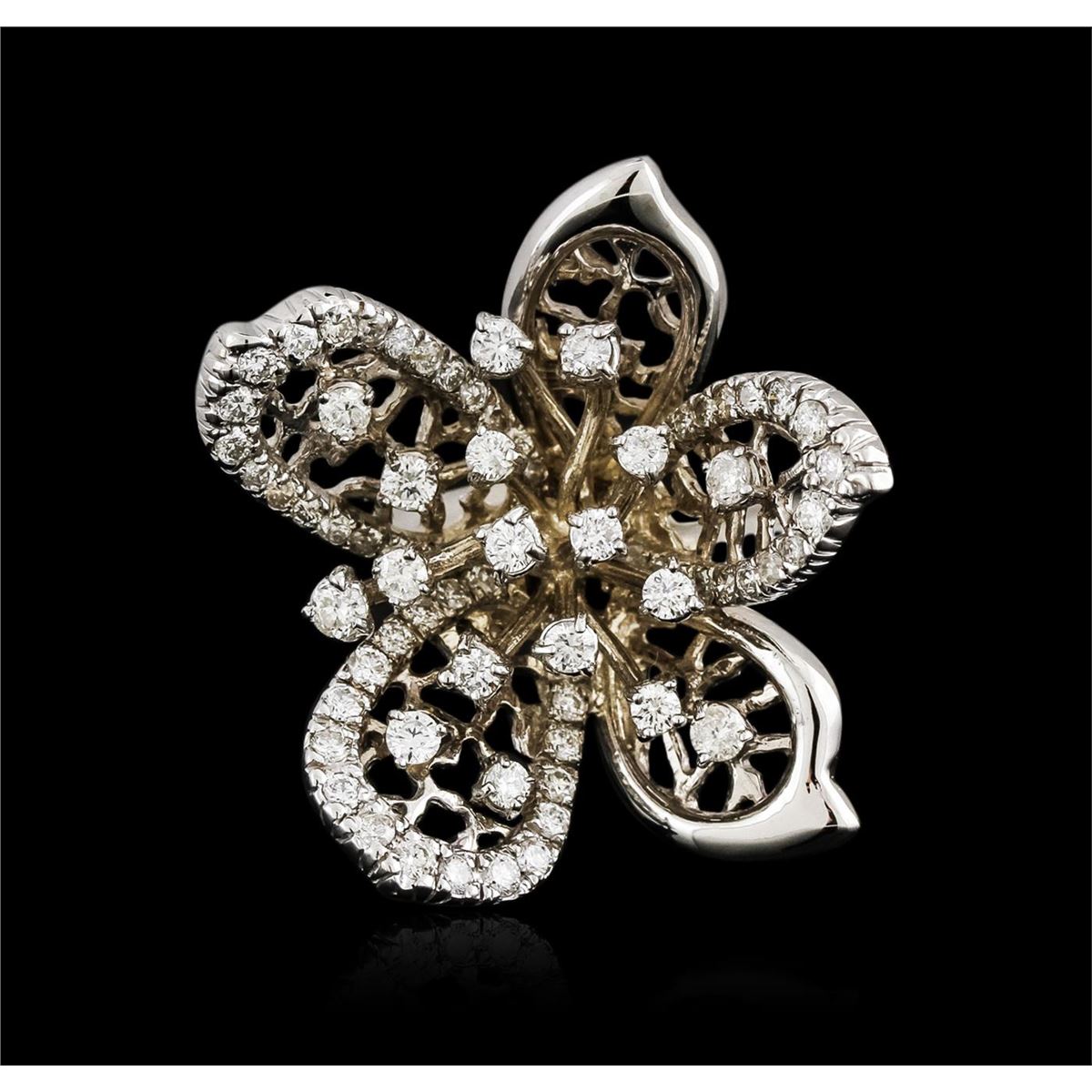 One electronically tested 14KT white gold ladies cast diamond ring with a bright polish finish. Identified with markings of "14K". Condition is new. Containing: Sixty-Six prong set round brilliant cut diamonds, measuring 2.00 - 1.50 x 1.05mm (depth est.) approximate total weight of 66 Stones = 1.29ct. Clarity: SI-1 to I-1. Color: I - J. All diamonds are graded in the mounting, unless otherwise stated. Total Weight of Diamonds 1.29ct. Total Weight of Ring 11.40 grams. GGL Appraised at $4,945.00.