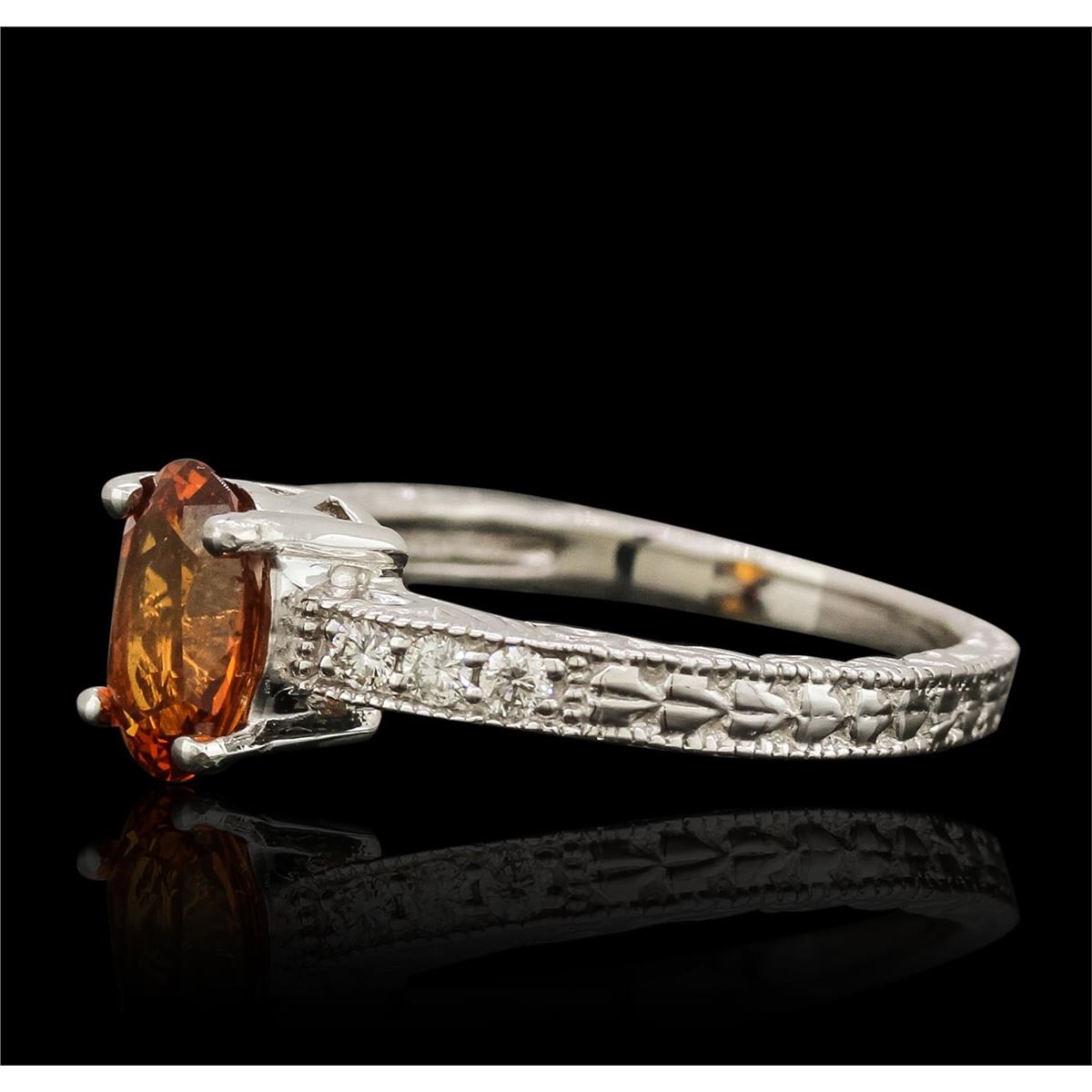 One ring featuring: 14KT white gold weighing 3.17 grams containing one spessartite with a total weight of 1.30ct and round cut diamonds with a total weight of 0.14cts.