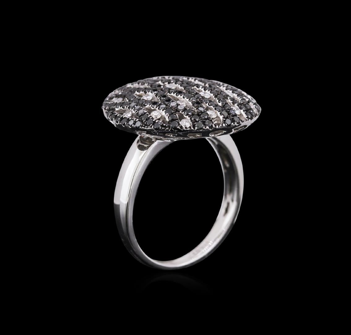 One ring featuring: 14KT white gold weighing 7.28 grams containing 170 black diamonds with a total weight of 0.99ct and 24 round diamonds with a total weight of 0.31ct.