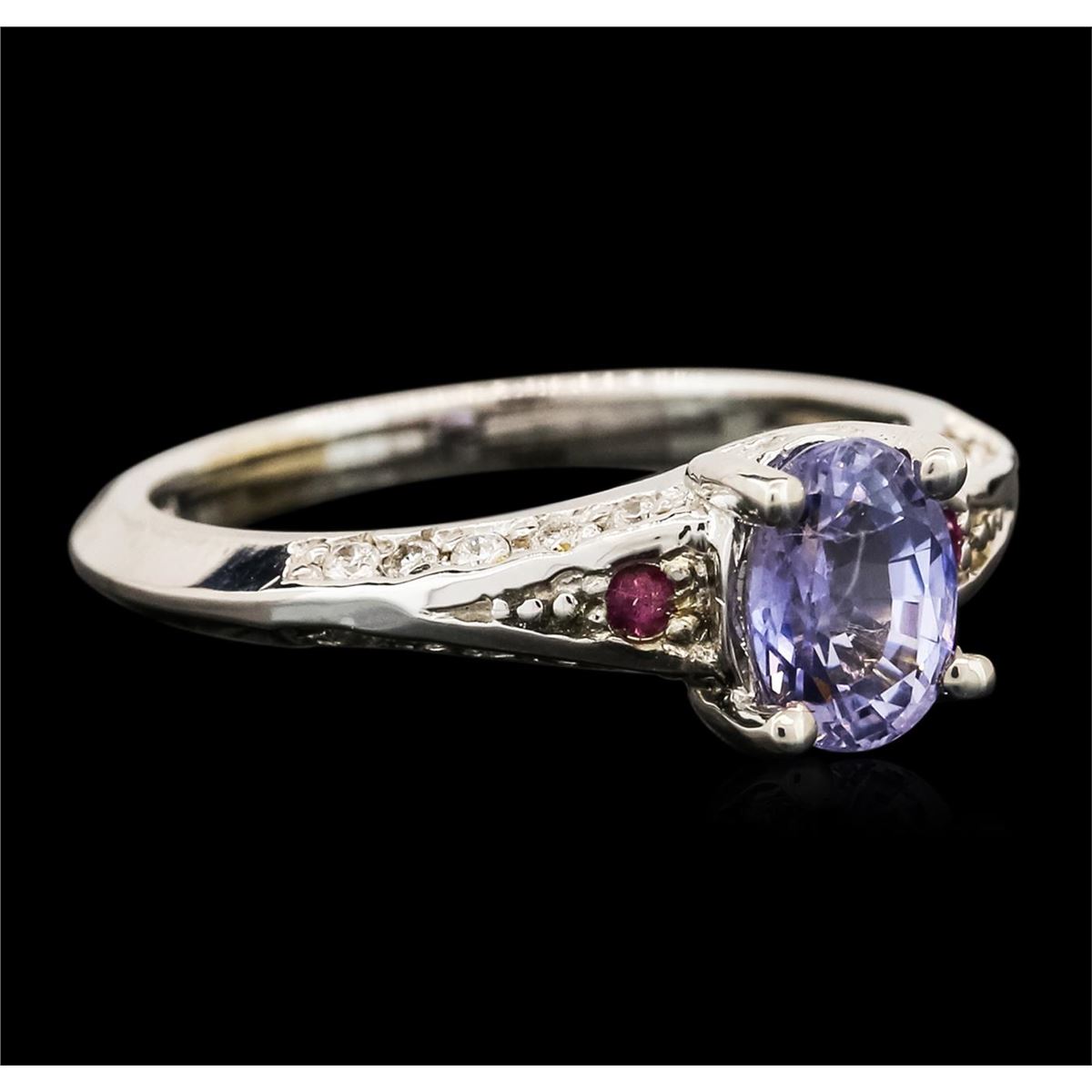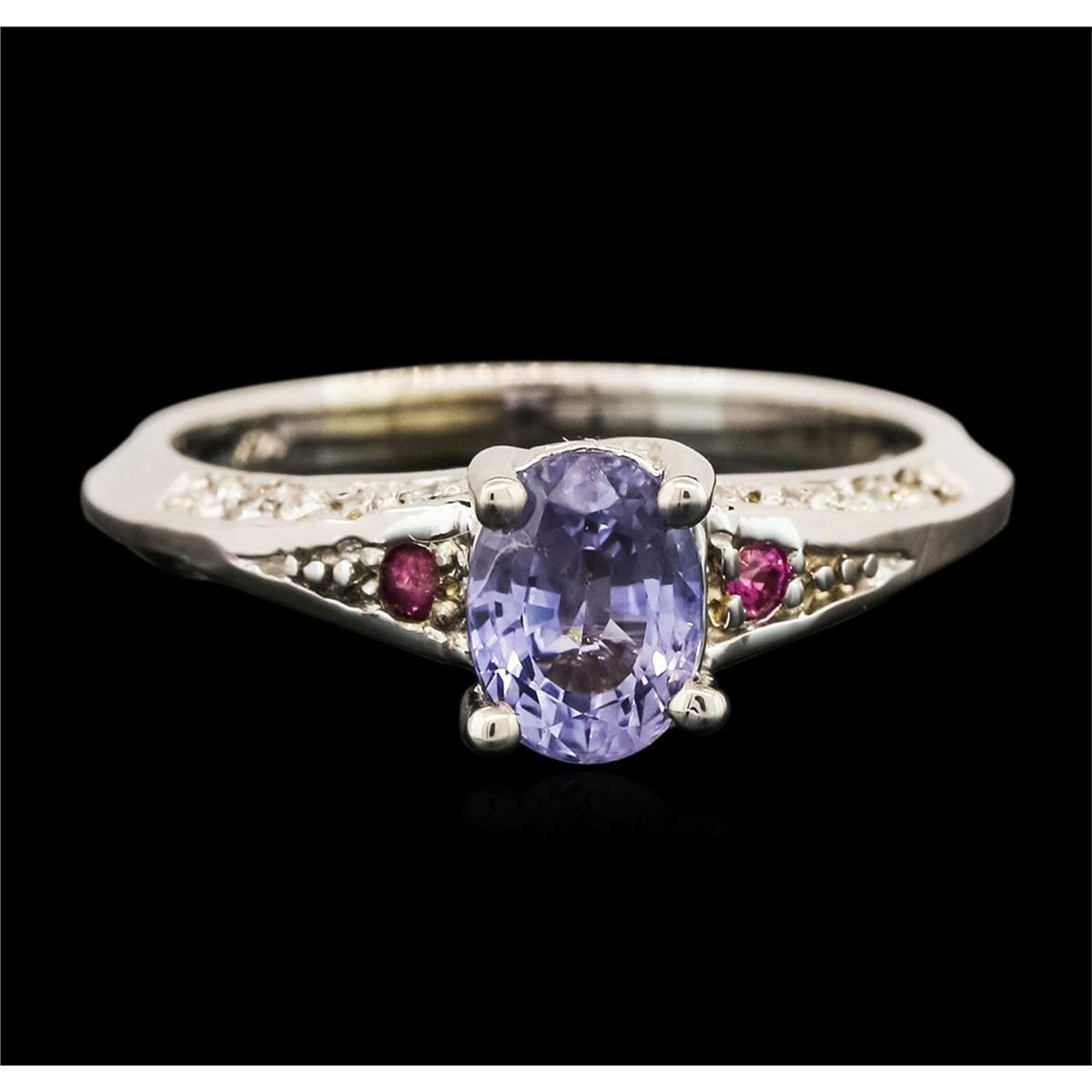 One ring featuring: 14KT white gold weighing 3.33 grams containing one blue sapphire center stone with a total weight of 1.27ct, pink sapphires with a total weight of 0.04ct, and diamonds with a total weight of 0.35ct.