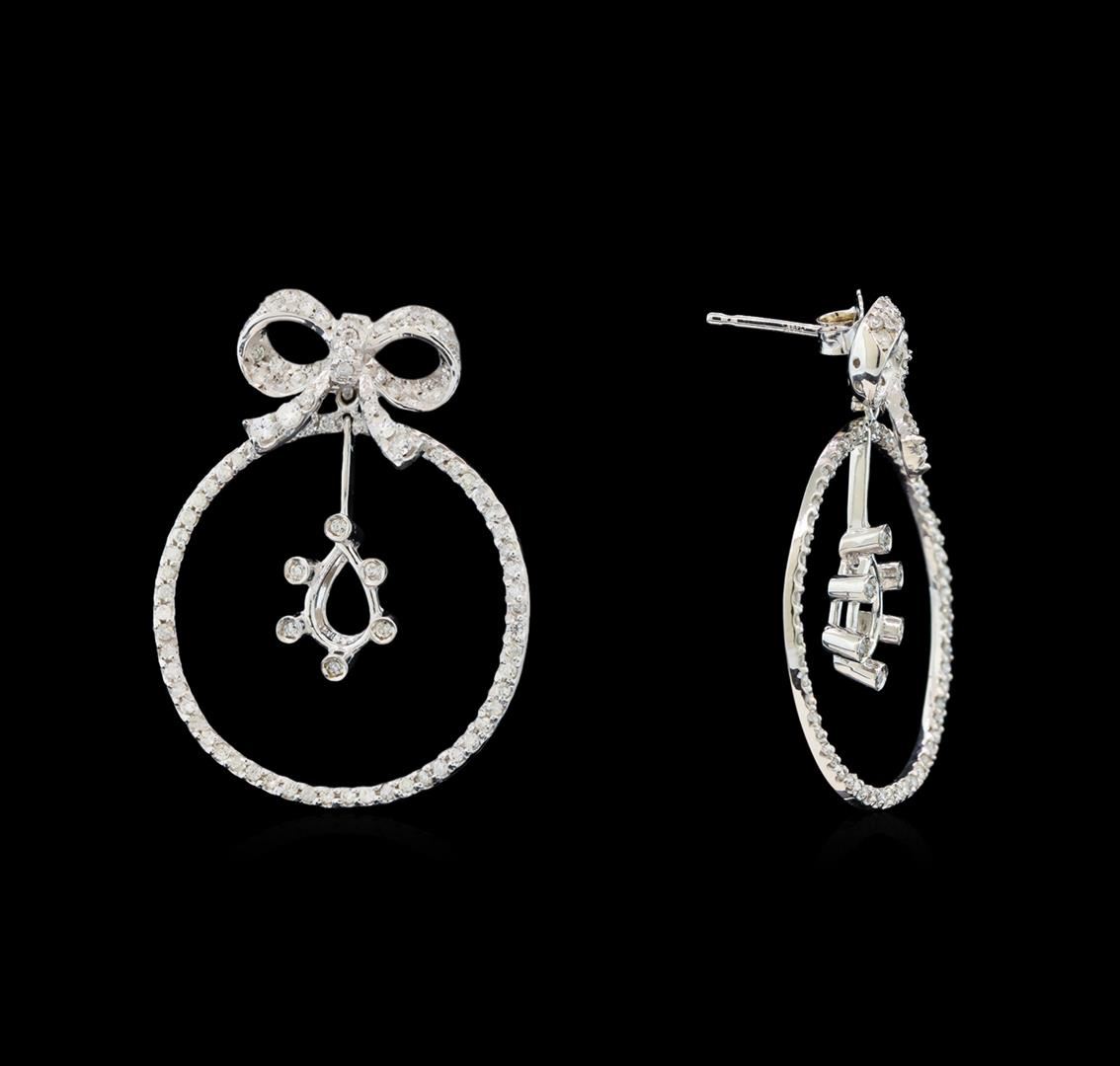 One pair electronically tested 14KT white gold ladies cast diamond earrings with friction posts with a bright polish finish. Identified with markings of "14K". Condition is new. Containing: Two Hundred Four prong set round brilliant cut diamonds, measuring 1.90 - 1.20 x 0.93mm (depth est.) approximate total weight of 204 Stones = 1.36ct. Clarity: SI-2 to I-2. Color: I - J, Cut is Good. All diamonds are graded in the mounting, unless otherwise stated. Total Weight of Diamonds 1.36ct. Total Weight of Earrings 7.40 grams. GGL Appraised at $2,925.00.