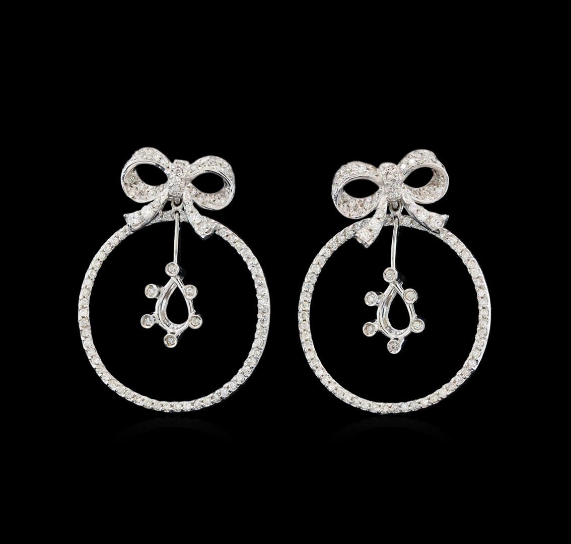 One pair electronically tested 14KT white gold ladies cast diamond earrings with friction posts with a bright polish finish. Identified with markings of "14K". Condition is new. Containing: Two Hundred Four prong set round brilliant cut diamonds, measuring 1.90 - 1.20 x 0.93mm (depth est.) approximate total weight of 204 Stones = 1.36ct. Clarity: SI-2 to I-2. Color: I - J, Cut is Good. All diamonds are graded in the mounting, unless otherwise stated. Total Weight of Diamonds 1.36ct. Total Weight of Earrings 7.40 grams. GGL Appraised at $2,925.00.