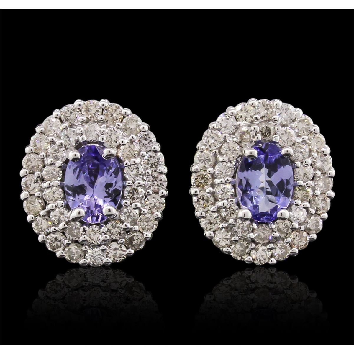 One pair electronically tested 14KT white gold Ladies combination cast & assembled stud earrings with friction posts with a bright polish finish. Condition is new. Identified with markings of "14K". Containing: Two prong set oval modified brilliant cut natural tanzanites, measuring 6.70 x 4.90 x 2.80mm, approximate. Total Weight of 1.40ct., clarity is eye clean, medium light, very slightly grayish, violet color, (GIA V 4/3), cut is good. Colored gemstones are presumed to have been subjected to commonly used color/clarity enhancement processes. Seventy-Two prong set round brilliant cut diamonds, measuring 1.50 - 1.50 x 0.90mm (depth est.) approximate. Total Weight of 72 Stones = 1.41ct. Clarity: I-1 to I-2. Color: K - L, Cut is Good. Total Weight of Colored Stones 1.40ct. Total Weight of Diamonds 1.41ct. Total Weight of Earrings 4.80 grams. GGL Appraised at $5,545.00.