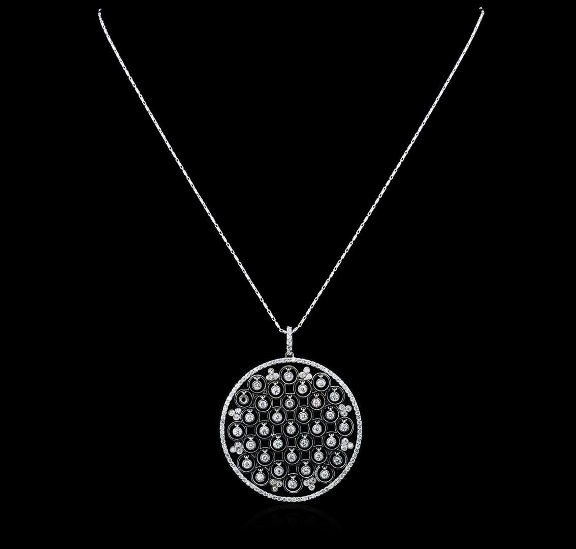 One electronically tested 14KT white gold ladies combination cast & assembled diamond pendant & chain 18.0" long, fancy link with a lobster claw clasp with a bright polish finish. Identified with markings of "K14". Condition is new. Containing: One Hundred Three prong set round brilliant cut diamonds, measuring 1.80 - 1.30 x 0.93mm (depth est.) approximate total weight of 103 Stones = 1.40ct. Clarity: SI-1 to SI-2. Color: I - J, Cut is Good. All diamonds are graded in the mounting, unless otherwise stated. Total Weight of Diamonds 1.40ct. Total Weight of Pendant & Chain 15.90 grams. GGL Appraised at $8,530.00.