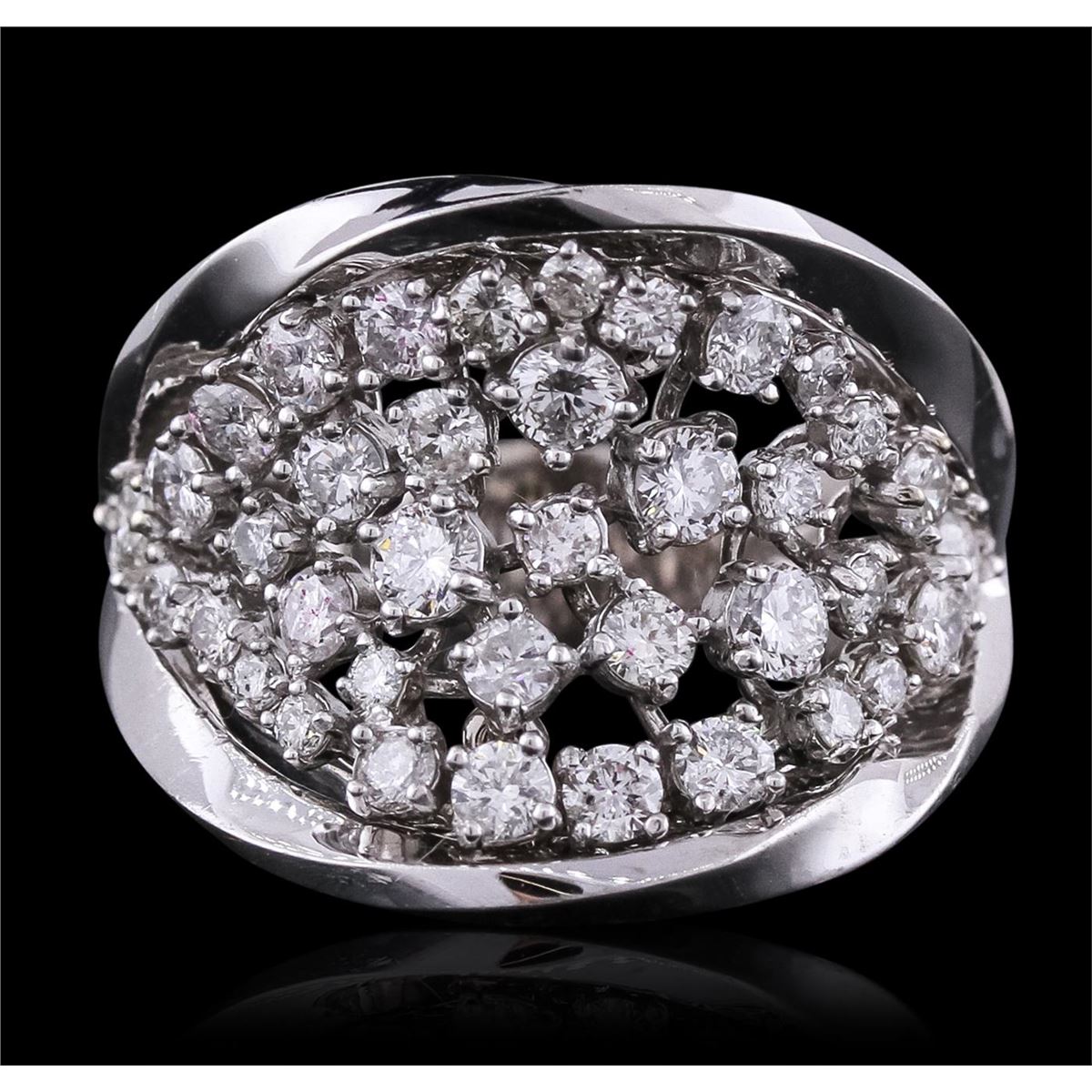 One electronically tested 14KT white gold ladies combination cast & assembled ring with a bright polish finish. Condition is new. Identified with markings of "585". Containing: Thirty-Eight prong set round brilliant cut diamonds, measuring 2.50 - 2.00 x 1.35mm (depth est.) approximate total weight of 38 Stones = 1.40ct. Clarity: SI-2 to I-2. Color: I - J, Cut is Good. All diamonds are graded in the mounting, unless otherwise stated. Total Weight of Diamonds 1.40ct. Total Weight of Ring 6.90 grams. GGL Appraised at $5,085.00.