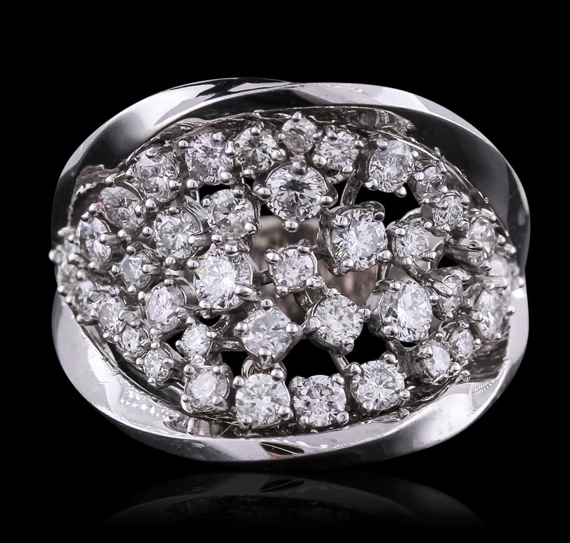 One electronically tested 14KT white gold ladies combination cast & assembled ring with a bright polish finish. Condition is new. Identified with markings of "585". Containing: Thirty-Eight prong set round brilliant cut diamonds, measuring 2.50 - 2.00 x 1.35mm (depth est.) approximate total weight of 38 Stones = 1.40ct. Clarity: SI-2 to I-2. Color: I - J, Cut is Good. All diamonds are graded in the mounting, unless otherwise stated. Total Weight of Diamonds 1.40ct. Total Weight of Ring 6.90 grams. GGL Appraised at $5,085.00.
