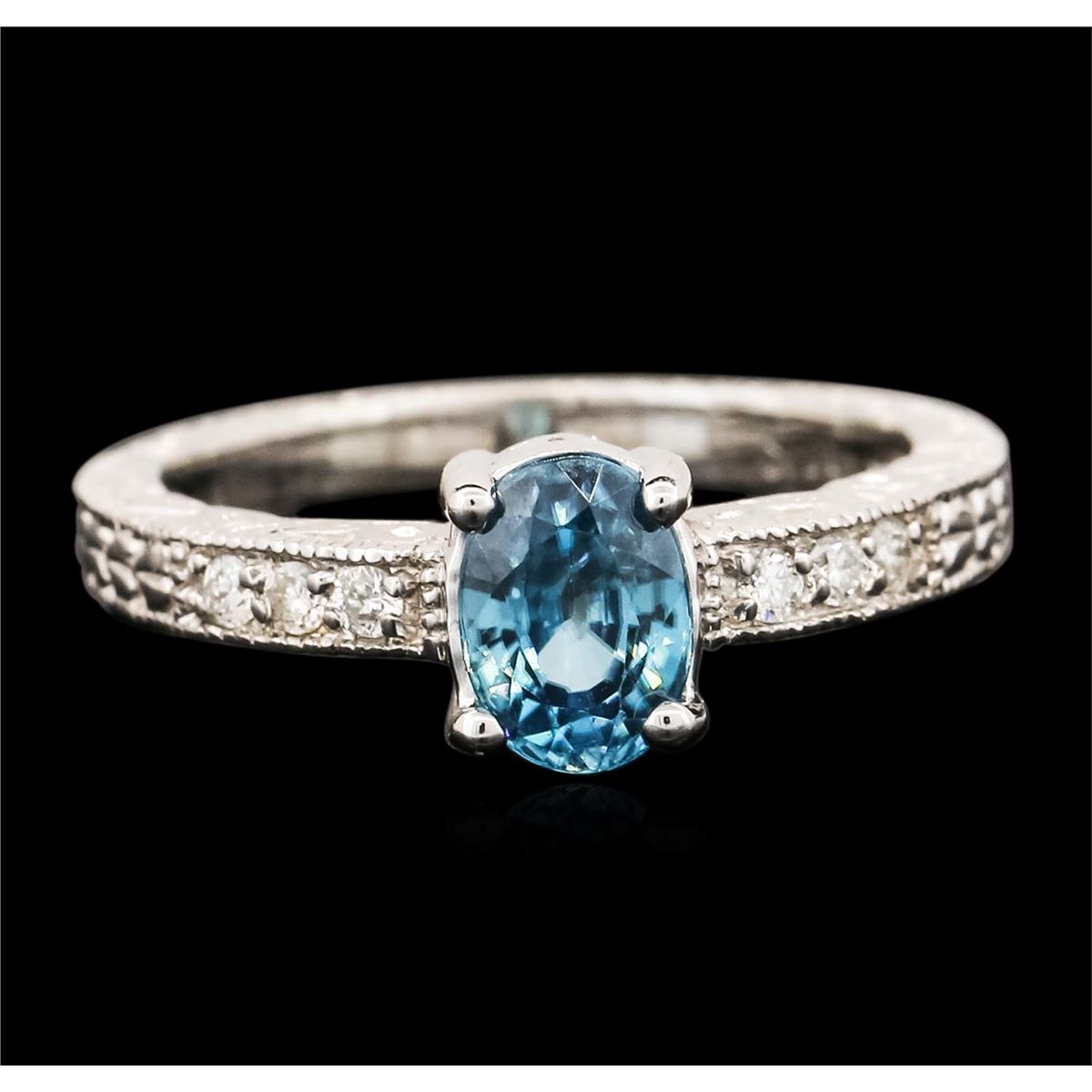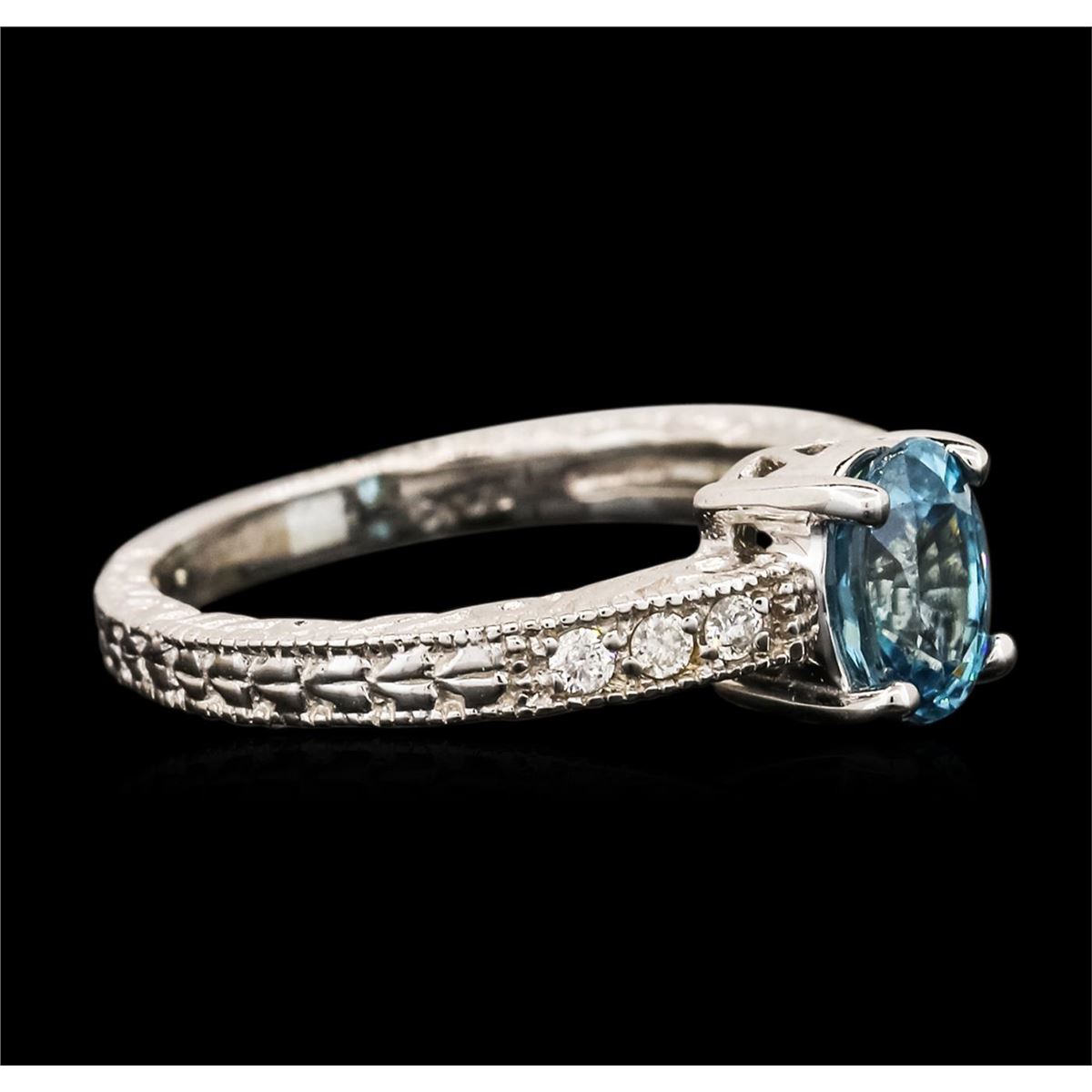 One ring featuring: 14KT white gold weighing 3.34 grams containing one blue zircon center stone with a total weight of 1.41ct and diamonds with a total weight of 0.11ct.