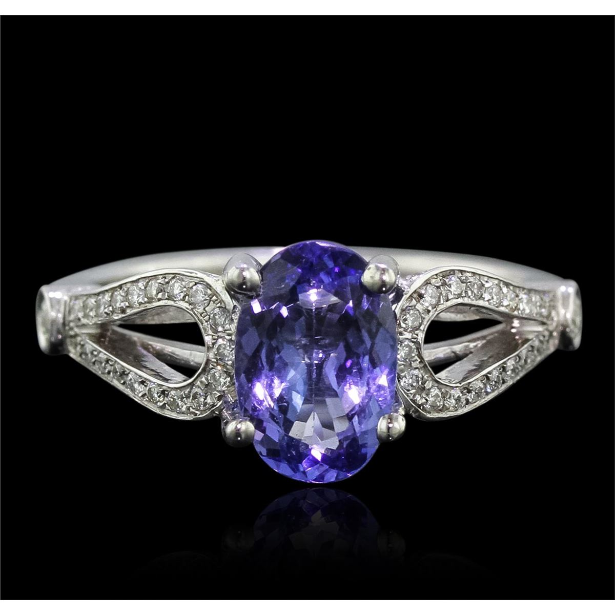 One Ring featuring: 14KT White Gold with a total weight of 3.90 grams, Tanzanite with a total weight of 1.45ct, and Diamonds with a total weight of 0.28ctw.