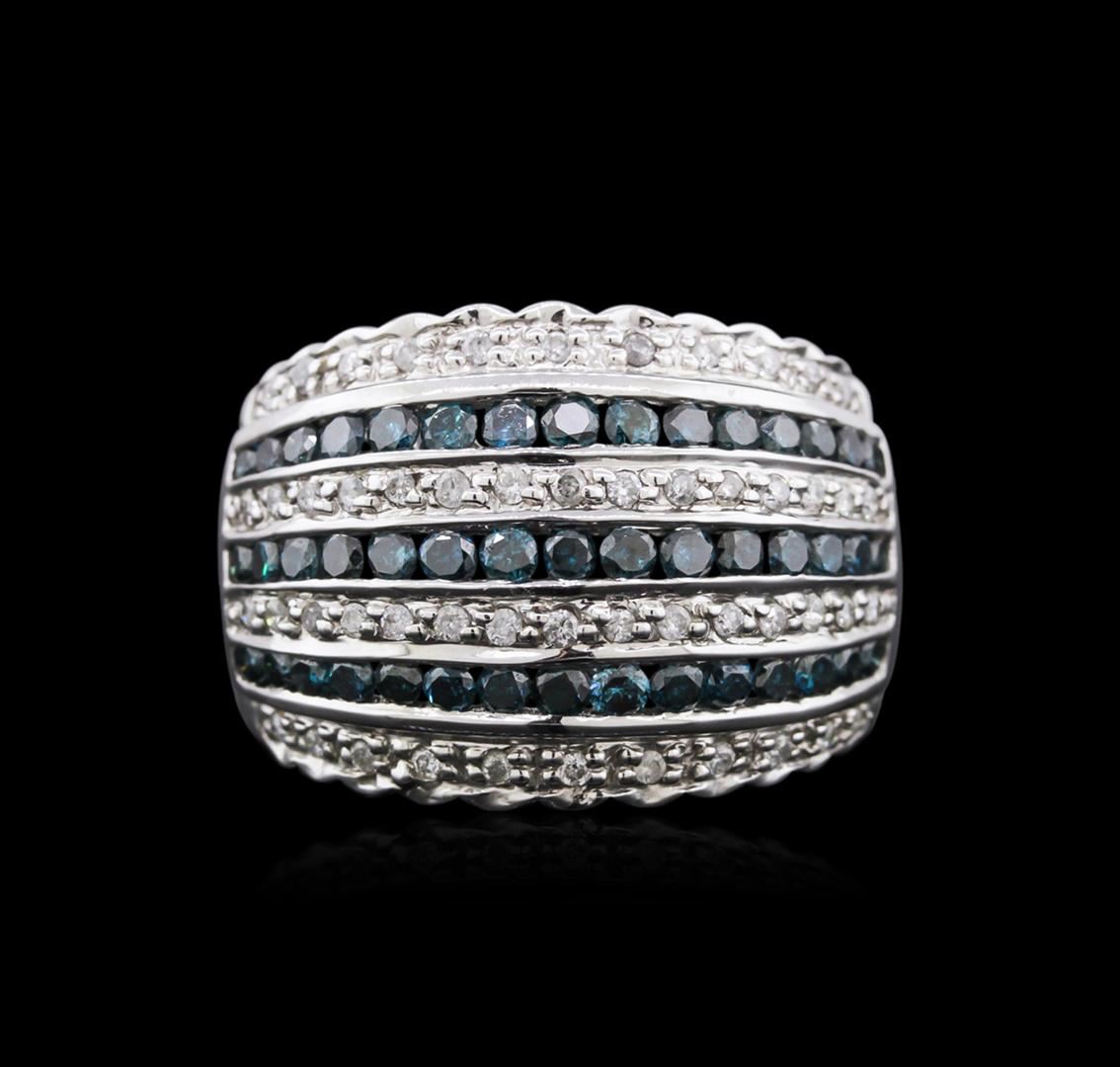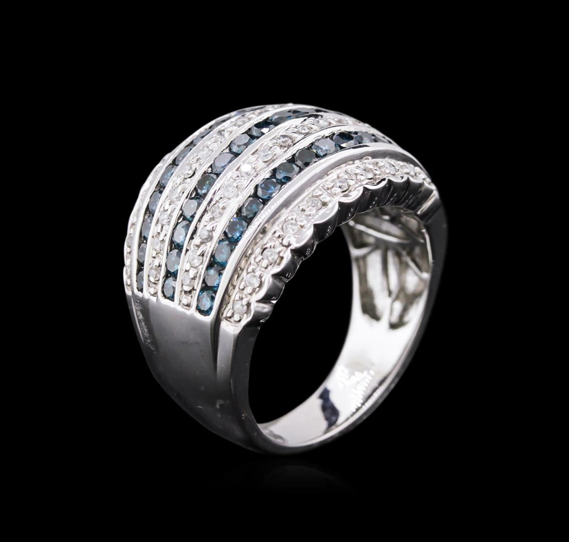 One ring featuring: 14KT white gold weighing 6.23 grams containing 45 treated blue diamonds with a total weight of 1.14ct and 52 round diamonds with a total weight of 0.31ct.