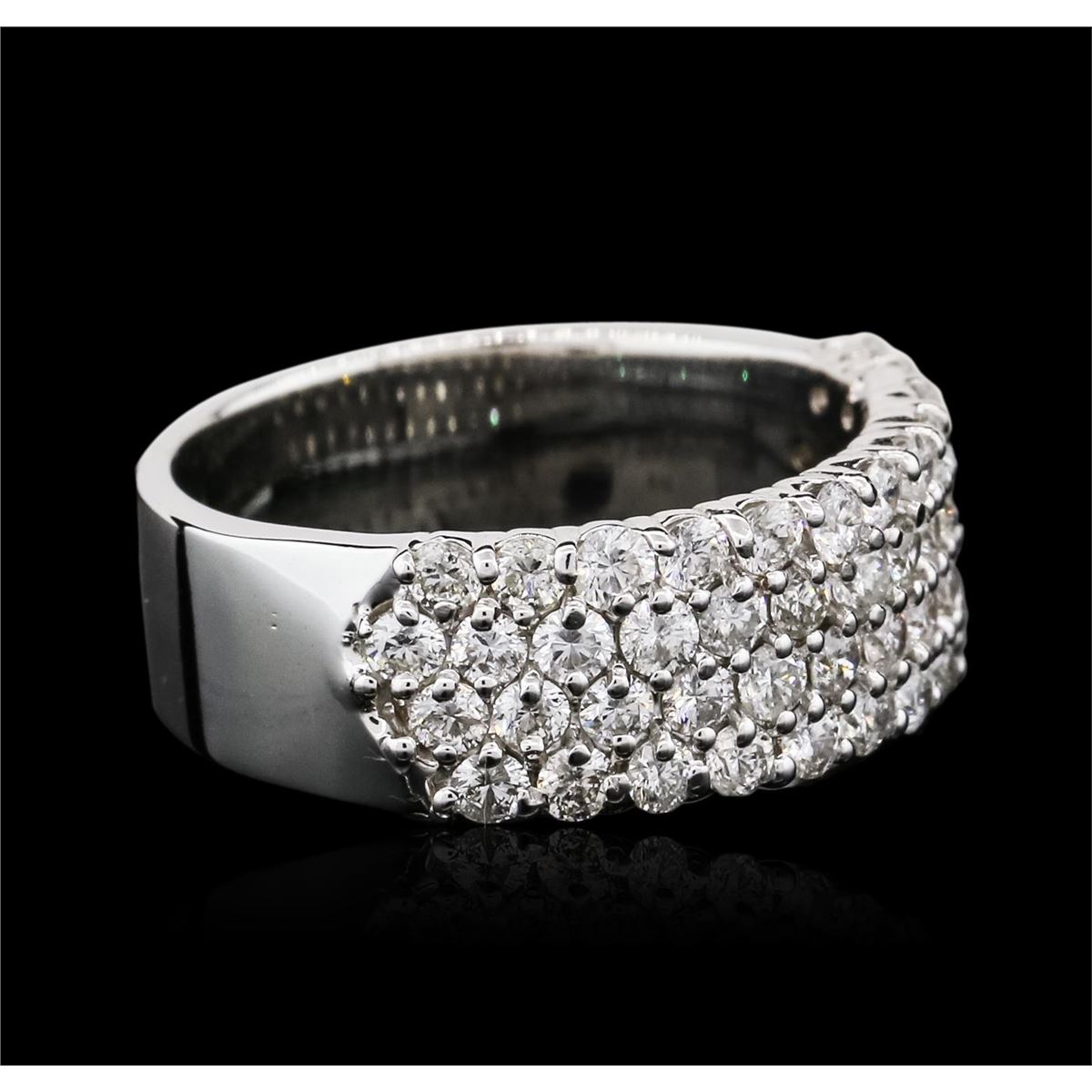 One electronically tested 14KT white gold ladies combination cast & assembled diamond ring with a bright polish finish. Identified with markings of "14K". Condition is new. Containing: Fifty prong set round brilliant cut diamonds, measuring 2.00 - 2.00 x 1.20mm (depth est.) approximate total weight of 50 Stones = 1.46ct. Clarity: SI-2 to I-2. Color: I - J, Cut is Good. All diamonds are graded in the mounting, unless otherwise stated. Total Weight of Diamonds 1.46ct. Total Weight of Ring 6.50 grams. GGL Appraised at $4,540.00.