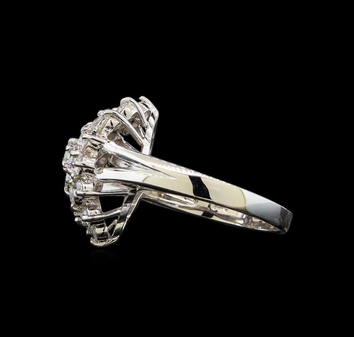 One electronically tested 14KT white gold ladies cast diamond ring with a bright polish finish. Identified with markings of "14K". Condition is new. Containing: Twenty-Seven prong set round brilliant cut diamonds, measuring 2.90 - 2.80 x 1.71mm (depth est.) approximate total weight of 27 Stones = 1.47ct. Clarity: SI-1 to SI-2. Color: G - H, Cut is Very Good. All diamonds are graded in the mounting, unless otherwise stated. Total Weight of Diamonds 1.47ct. Total Weight of Ring 6.20 grams. GGL Appraised at $4,130.00.
