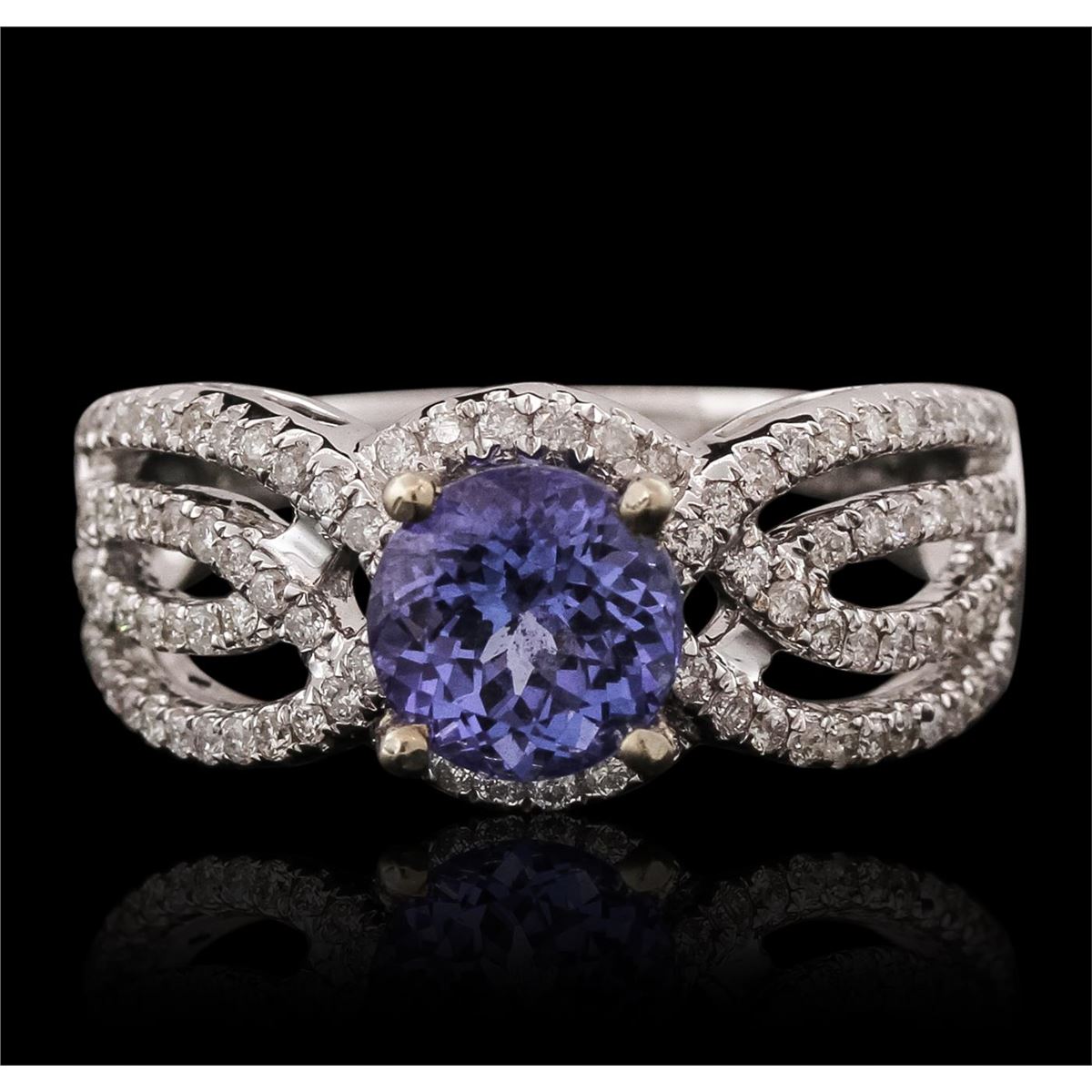 One electronically tested 14KT white gold ladies cast tanzanite & diamond ring with a bright finish. The featured tanzanite is set within a diamond bezel, transitioning to diamond set ribbon shoulders, completed by a three millimeter wide band. Trademark is Orianne. Identified with markings of "14K". Condition is good. Containing: One prong set round mixed cut natural tanzanite, measuring 6.80 - 6.80 x 4.65 mm, 4% bulge factor, approximate weight of 1.50ct., clarity is eye clean, type I, medium dark, slightly grayish, bluish violet color, (GIA bV 6/2), cut is good. Transmitting light with no distortion, transparent. Graded in the setting. Tanzanite is a very rare gemstone that is only found in the country of Tanzania. Tanzanite was originally discovered in 1967. Tiffany & Company, named the stone "Tanzanite" after the country of origin. Tanzanite is found in the Usumburu Mountains that border the Umba Valley of northern Tanzania. This region is inhabited by the Masai tribes-people. The mining area is located just south of the Kenya border near Mt. Kilimanjaro. Tanzanite occurs in colors of gray, brown, violet, blue, reddish-purple, & green. The gem is interesting because of its exceptional pleochroism. Rotated in different directions a tanzanite will exhibit multiple changes of color. Tanzanite has a low tolerance to ultrasonic cleaning, and should not be cleaned using this method. Ninety-Six prong set round brilliant cut diamonds, measuring 1.00 - 1.00 x 0.60mm (depth est.) approximate total weight of 96 Stones = 0.36ct. Graded in the setting. Clarity: I-1 to I-2. Color: G - I. Total Weight of Colored Stones 1.50ct. Total Weight of Diamonds 0.36ct. Total Weight of Ring 5.87 grams. AIG Appraised at $4,450.00.