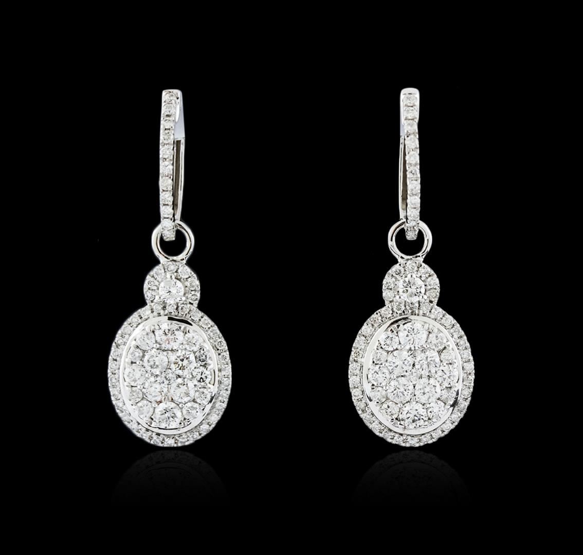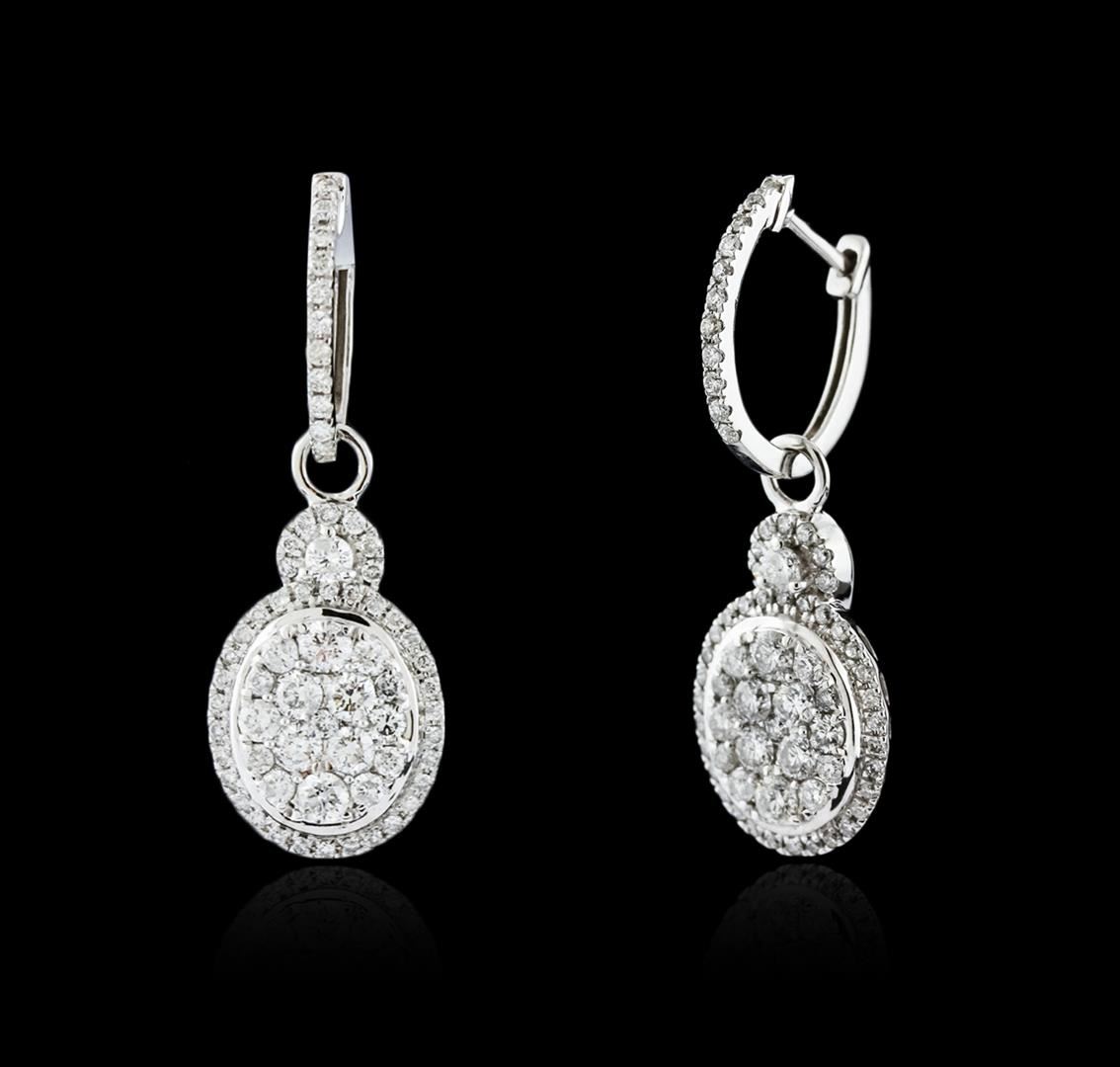 One pair of dangle earrings featuring: 14KT white gold weighing 4.20 grams containing diamonds with a total weight of 1.50ct.
