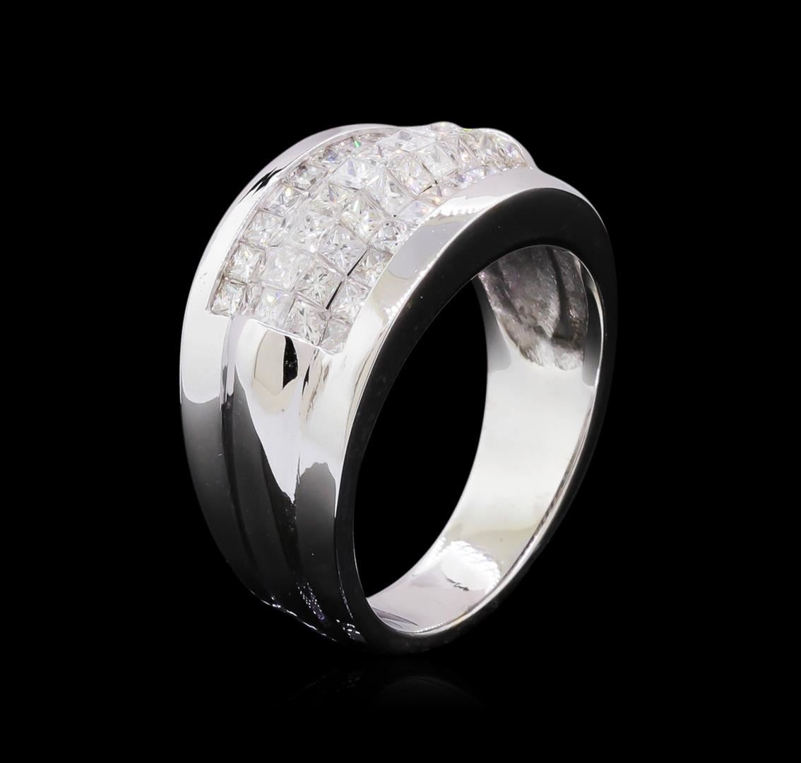 One electronically tested 14KT white gold man's combination cast & assembled ring with a bright polish finish. Condition is new. Identified with markings of "14K". Containing: Fifty pave' set princess cut diamonds, measuring 1.90 x 1.60 x 1.21mm (depth est.) approximate. Total Weight of 50 Stones = 1.51ct. Clarity: I-1 to I-2. Color: H - J, Cut is Good. Total Weight of Diamonds 1.51ct. Total Weight of Ring 8.30gm. GGL Appraised at $5,175.00.