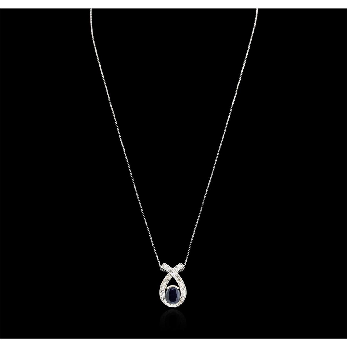 One pendant with chain featuring: 14KT white gold weighing 2.95 grams containing one sapphire with a total weight of 1.52ct and diamonds with a total weight of 0.47ct.