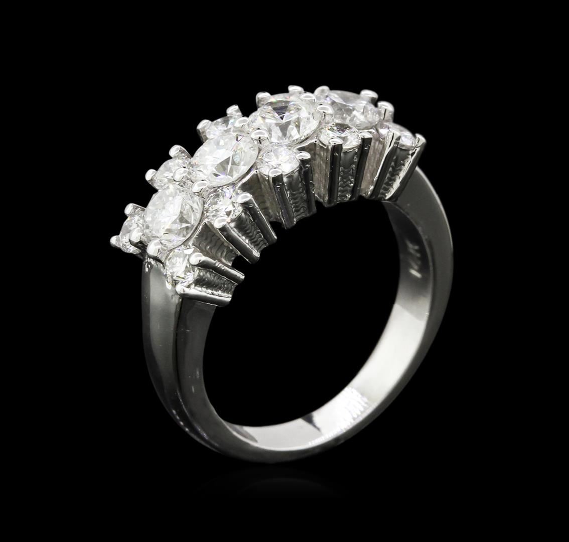 One electronically tested 14KT white gold ladies cast diamond ring with a bright polish finish. Identified with markings of "14K". Condition is new. Containing: Four prong set round brilliant cut diamonds, measuring 4.20 - 4.20 x 2.54mm (depth est.) approximate total weight of 4 Stones = 1.09ct. Clarity: SI-2. Color: J. Ten prong set round brilliant cut diamonds, measuring 2.30 - 2.30 x 1.38mm (depth est.) approximate total weight of 10 Stones = 0.45ct. Clarity: SI-1 to I-1. Color: I - J. All diamonds are graded in the mounting, unless otherwise stated. Total Weight of Diamonds 1.54ct. Total Weight of Ring 7.30 grams. GGL Appraised at $7,020.00.