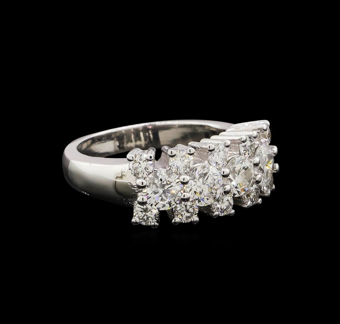 One electronically tested 14KT white gold ladies cast diamond ring with a bright polish finish. Identified with markings of "14K". Condition is new. Containing: Four prong set round brilliant cut diamonds, measuring 4.20 - 4.20 x 2.54mm (depth est.) approximate total weight of 4 Stones = 1.09ct. Clarity: SI-2. Color: J. Ten prong set round brilliant cut diamonds, measuring 2.30 - 2.30 x 1.38mm (depth est.) approximate total weight of 10 Stones = 0.45ct. Clarity: SI-1 to I-1. Color: I - J. All diamonds are graded in the mounting, unless otherwise stated. Total Weight of Diamonds 1.54ct. Total Weight of Ring 7.30 grams. GGL Appraised at $7,020.00.