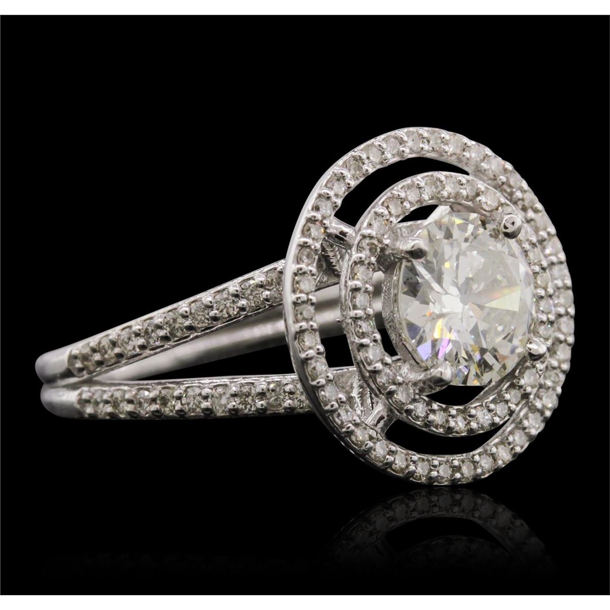 One electronically tested 14KT white gold Ladies combination cast & assembled engagement ring with a bright polish finish. Condition is new. Identified with markings of "14K". Containing: One prong set round brilliant cut diamond, measuring 7.00 - 6.98 x 3.50mm (depth est.) approximate. Total Weight of 1.09ct. Clarity: SI-2. Color: G, Cut is Good. One Hundred Two prong set round brilliant cut diamonds, measuring 1.00 - 1.00 x 0.60mm (depth est.) approximate. Total Weight of 102 Stones = 0.45ct. Clarity: SI-1 to SI-2. Color: H - I, Cut is Good. EGL USA GEM ID# US 911348439D. All diamonds are graded in the mounting, unless otherwise stated. Total Weight of Diamonds 1.54ct. Total Weight of Engagement Ring 4.50 grams. GGL Appraised at $27,135.00.