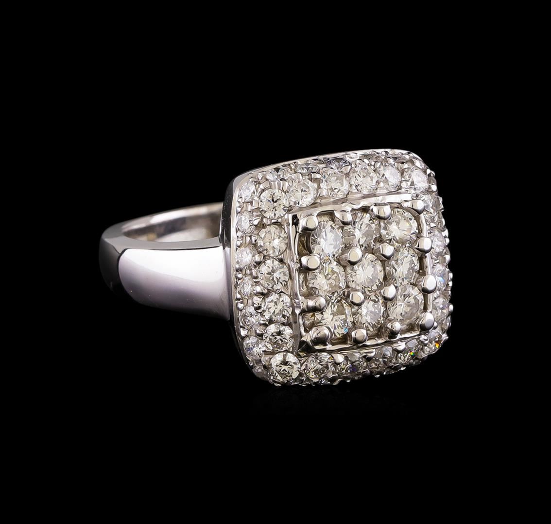 One electronically tested 14KT white gold ladies combination cast & assembled diamond ring with a bright polish finish. Identified with markings of "14K". Condition is new. Containing: Fifty-Three prong set round brilliant cut diamonds, measuring 2.50 - 1.50 x 1.20mm (depth est.) approximate total weight of 53 Stones = 1.55ct. Clarity: SI-2 to I-1. Color: I - J, Cut is Good. All diamonds are graded in the mounting, unless otherwise stated. Total Weight of Diamonds 1.55ct. Total Weight of Ring 7.20 grams. GGL Appraised.