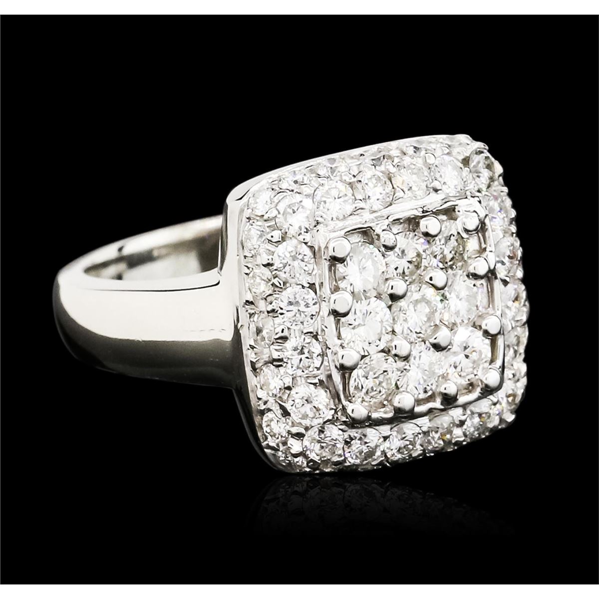One electronically tested 14KT white gold ladies combination cast & assembled diamond ring with a bright polish finish. Identified with markings of "14K". Condition is new. Containing: Fifty-Three prong set round brilliant cut diamonds, measuring 2.50 - 1.50 x 1.20mm (depth est.) approximate total weight of 53 Stones = 1.55ct. Clarity: SI-2 to I-1. Color: I - J, Cut is Good. All diamonds are graded in the mounting, unless otherwise stated. Total Weight of Diamonds 1.55ct. Total Weight of Ring 7.20 grams. GGL Appraised at $5,450.00.