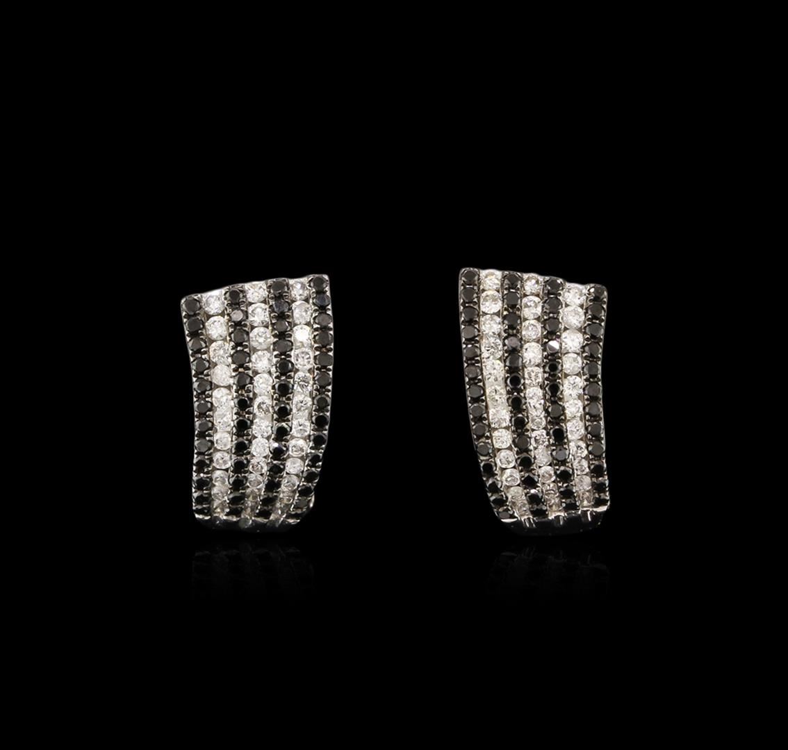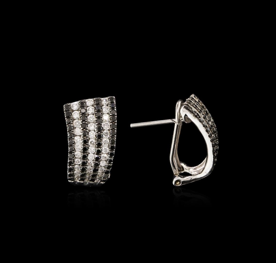 One pair of earrings featuring: 14KT white gold weighing 5.75 grams containing 102 black diamonds with a total weight of 0.74ct and 70 round diamonds with a total weight of 0.82ct.
