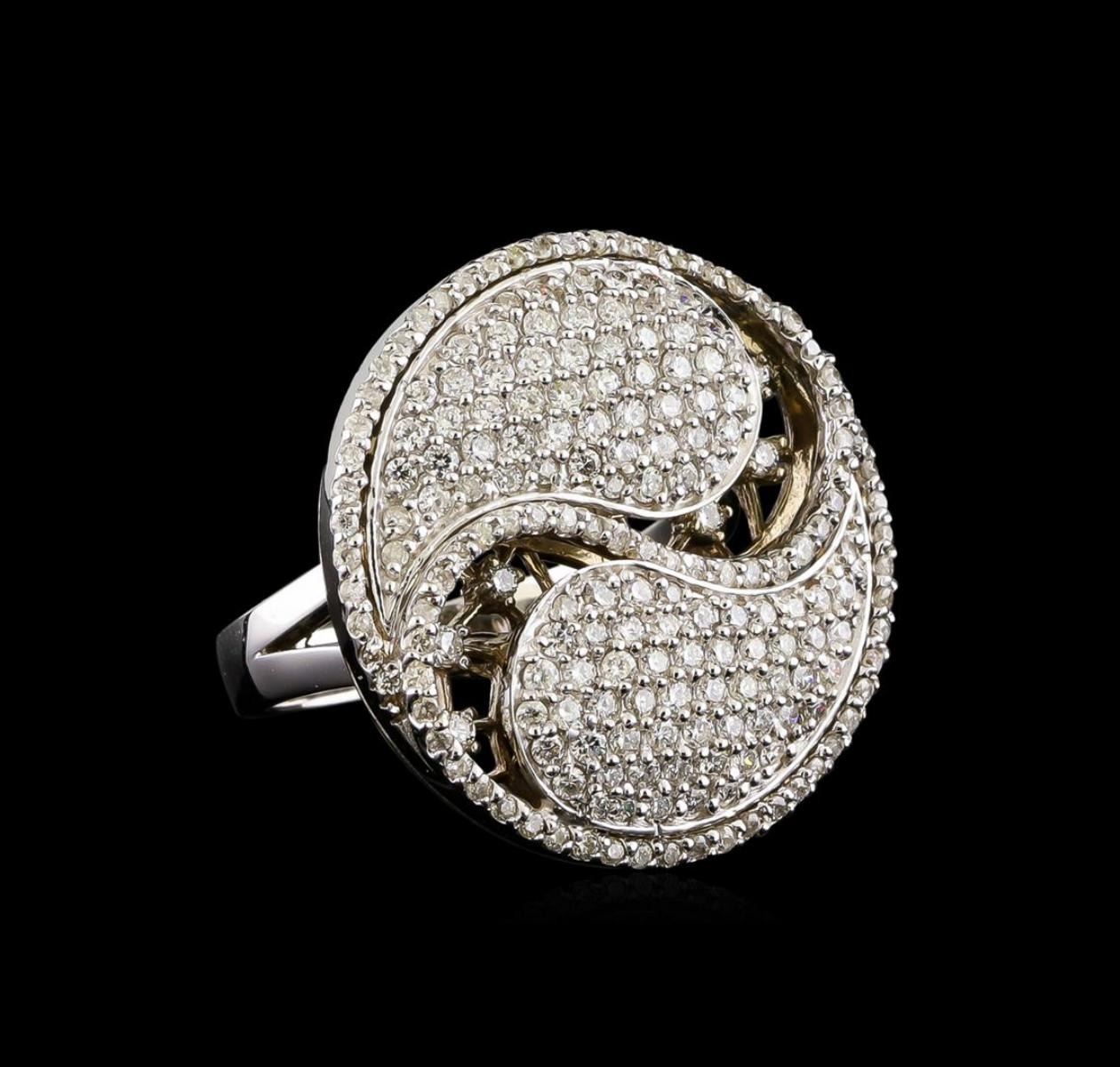 One electronically tested 14KT white gold ladies combination cast & die struck diamond ring with a split shoulder shank with a bright polish finish. Identified with markings of "K14". Condition is new. Containing: One Hundred Ninety-Six prong set round brilliant cut diamonds, measuring 1.30 - 1.30 x 0.78mm (depth est.) approximate total weight of 196 Stones = 1.57ct. Clarity: SI-1 to SI-2. Color: I - J, Cut is Good. All diamonds are graded in the mounting, unless otherwise stated. Total Weight of Diamonds 1.57ct. Total Weight of Ring 10.60 grams. GGL Appraised.