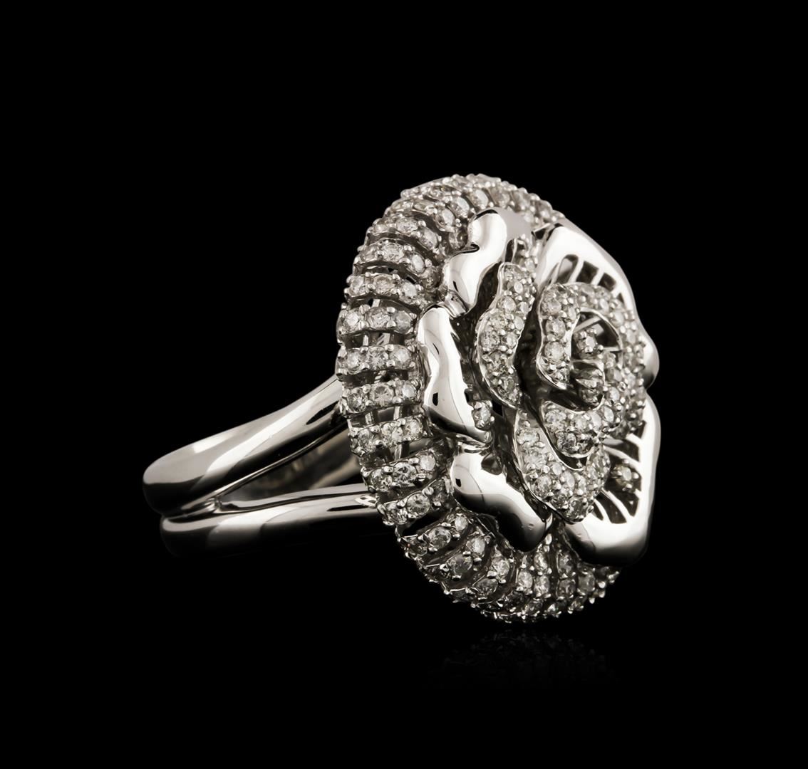 One electronically tested 14KT white gold ladies cast diamond ring with a bright polish finish. Identified with markings of "14K". Condition is new. Containing: One Hundred Ninety-Nine prong set round brilliant cut diamonds, measuring 1.30 - 1.30 x 0.78mm (depth est.) approximate total weight of 199 Stones = 1.59ct. Clarity: SI-2 to I-2. Color: H - I, Cut is Good. All diamonds are graded in the mounting, unless otherwise stated. Total Weight of Diamonds 1.59ct. Total Weight of Ring 11.20 grams. GGL Appraised at $5,880.00.