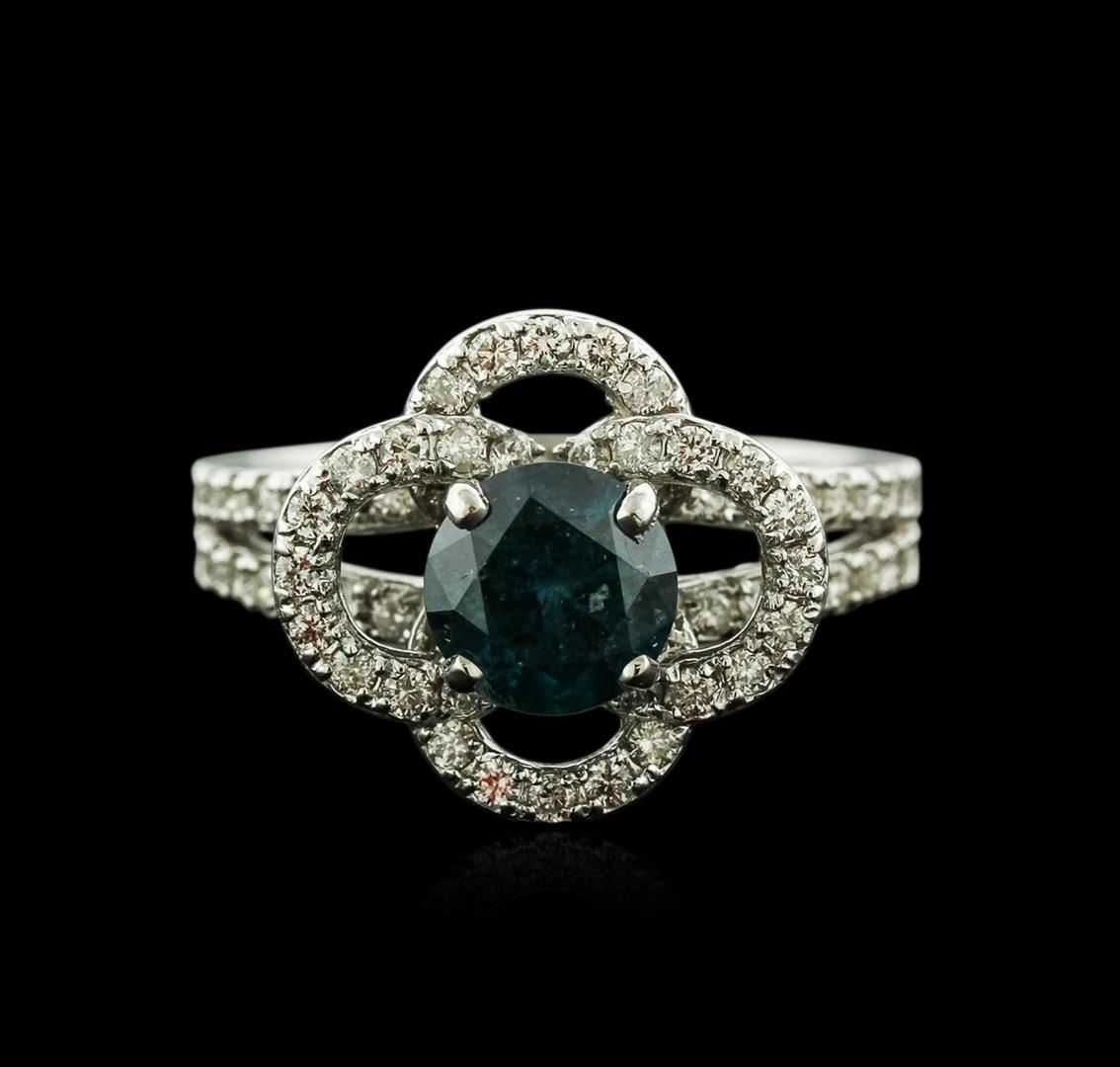 One electronically tested 14KT white gold ladies cast diamond engagement ring with a bright polish finish. Identified with markings of "K14". Condition is new. Containing: One prong set round brilliant cut diamond, measuring 6.80 - 6.80 x 4.08mm (depth est.) approximate weight of 1.15ct. Clarity: I-3, Cut is Good. Sixty prong set round brilliant cut diamonds, measuring 1.30 - 1.30 x 0.78mm (depth est.) approximate total weight of 60 Stones = 0.48ct. Clarity: SI-1 to I-1. Color: I - J, Cut is Good. All diamonds are graded in the mounting, unless otherwise stated. Total Weight of Diamonds 1.63ct. Total Weight of Engagement Ring 5.10 grams. GGL Appraised at $4,590.00.