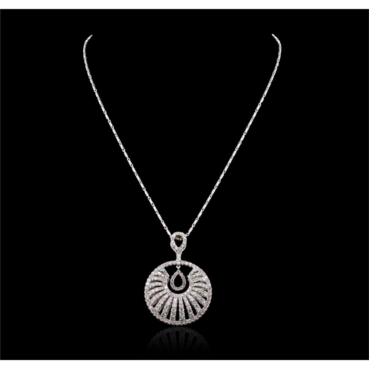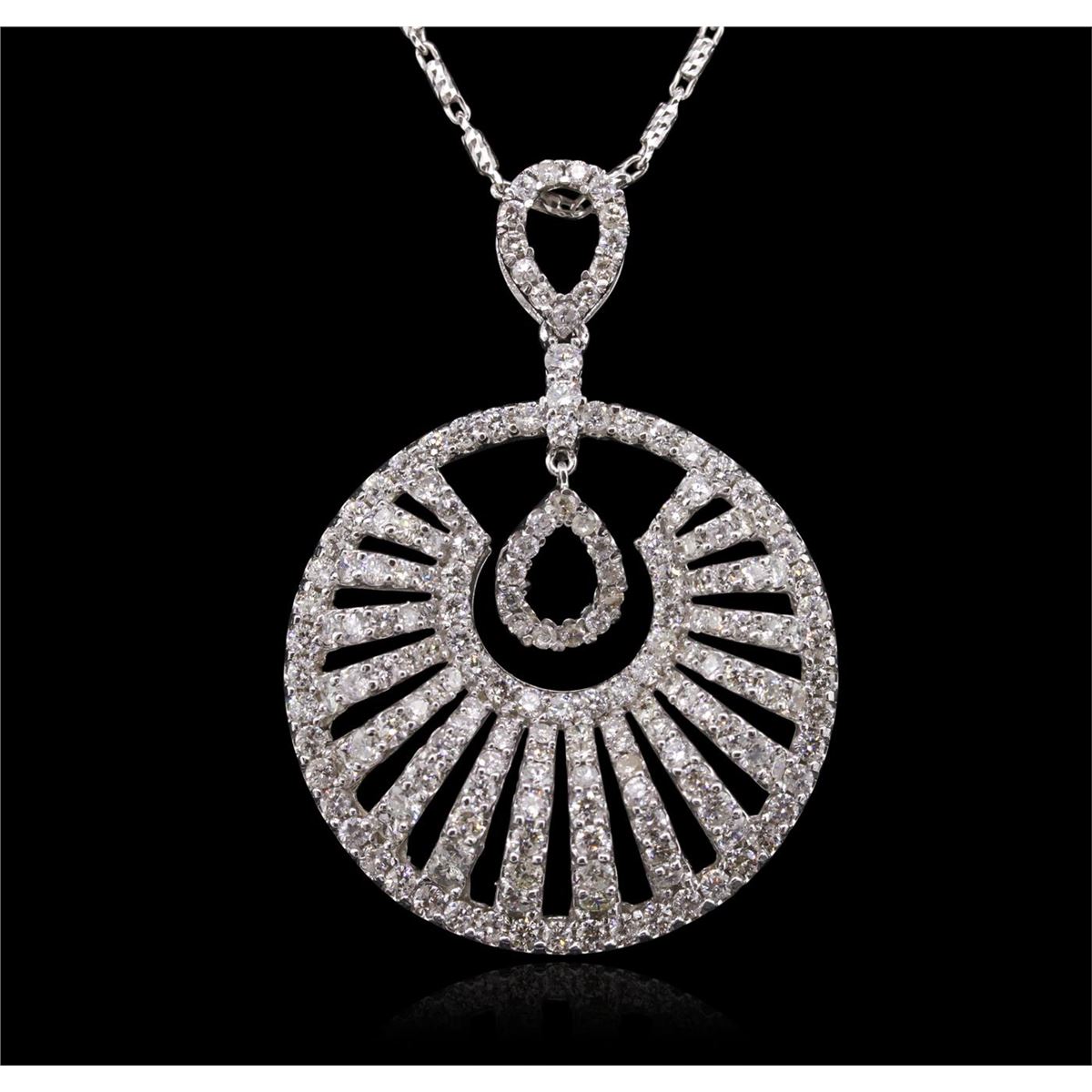 One electronically tested 14KT white gold Ladies combination cast & assembled pendant & chain 17.0" long, medium fancy link with a lobster claw clasp with a bright polish finish. Condition is new. Identified with markings of "14K". Containing: Ninety-One prong set round brilliant cut diamonds, measuring 1.90 - 1.50 x 1.02mm (depth est.) approximate. Total Weight of 91 Stones = 1.63ct. Clarity: I-1 to I-2. Color: I - J, Cut is Good. All grading of diamonds and colored gemstones in this piece of jewelry are graded in the mounting, unless otherwise stated. Total Weight of Diamonds 1.63ct. Total Weight of Pendant & Chain 21.60 grams. GGL Appraised at $10,100.00.