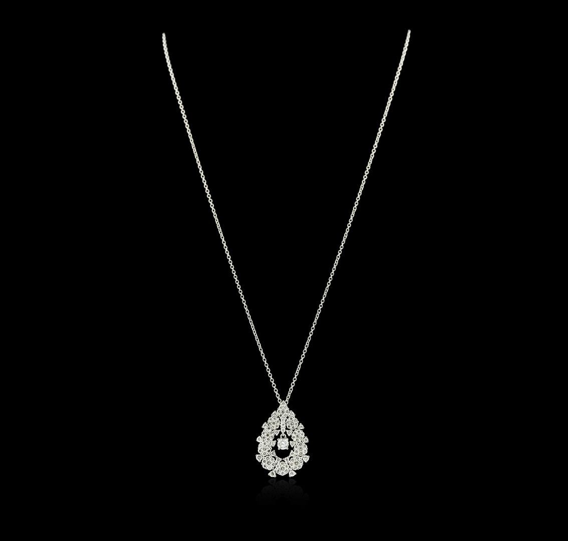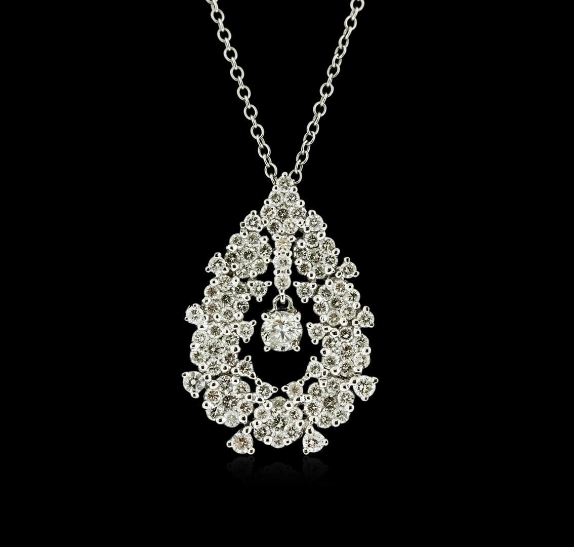 One pendant with chain featuring: 14KT white gold weighing 3.10 grams containing one round diamond center weighing 0.20 carats and diamonds weighing a total of 1.47 carats.