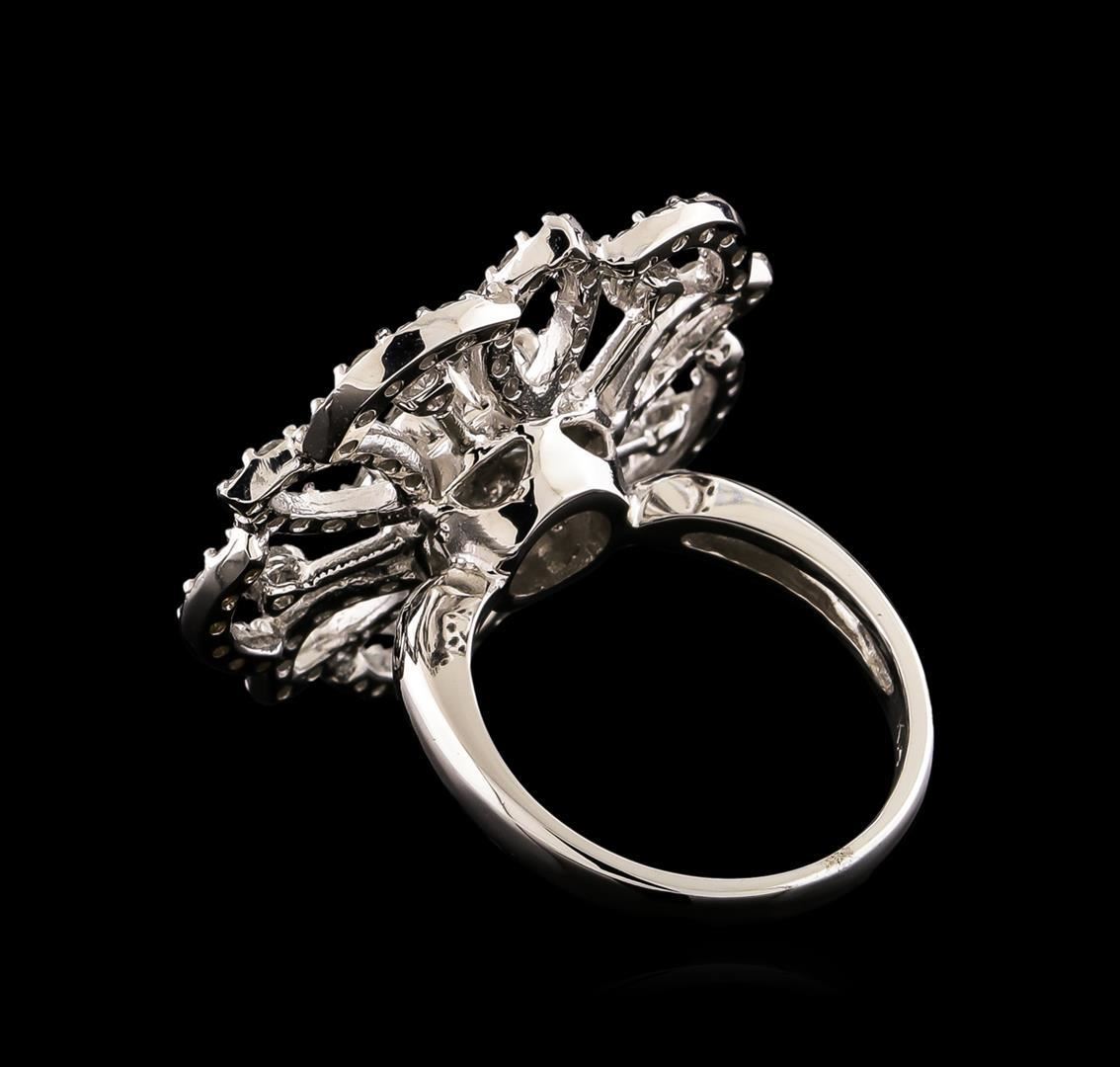 One electronically tested 14KT white gold ladies combination cast & assembled ring with a bright polish finish. Condition is new. Identified with markings of "K14". Containing: Twelve prong set round brilliant cut diamonds, measuring 3.60 - 2.10 x 1.71mm (depth est.) approximate. Total Weight of 12 Stones = 1.02ct. Clarity: SI-2 to I-1. Color: I - J, Cut is Good. Eighty-Five prong set round brilliant cut diamonds, measuring 1.30 - 1.30 x 0.78mm (depth est.) approximate. Total Weight of 85 Stones = 0.68ct. Clarity: I-1 to I-2. Color: I - J, Cut is Good. All diamonds are graded in the mounting, unless otherwise stated. Total Weight of Diamonds 1.70 ct. Total Weight of Ring 9.80 grams. GGL Appraised.