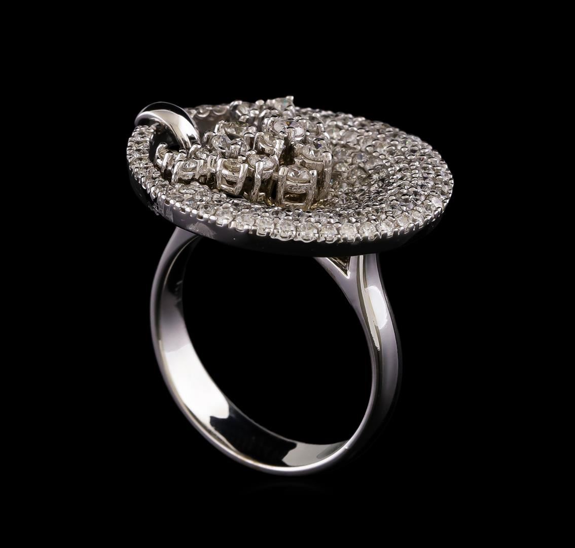 One electronically tested 14KT white gold ladies combination cast & assembled diamond ring with a bright polish finish. Identified with markings of "K14". Condition is new. Containing: One Hundred Forty-Eight prong set round brilliant cut diamonds, measuring 2.10 - 1.20 x 0.99mm (depth est.) approximate total weight of 148 Stones = 1.71ct. Clarity: SI-2 to I-2. Color: H - I, Cut is Good. All diamonds are graded in the mounting, unless otherwise stated. Total Weight of Diamonds 1.71ct. Total Weight of Ring 8.50 grams. GGL Appraised at $4,595.00.