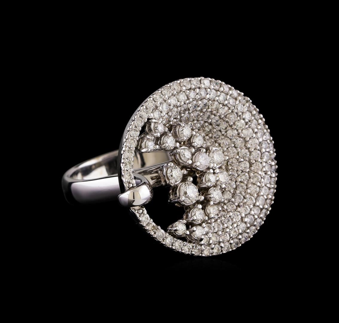 One electronically tested 14KT white gold ladies combination cast & assembled diamond ring with a bright polish finish. Identified with markings of "K14". Condition is new. Containing: One Hundred Forty-Eight prong set round brilliant cut diamonds, measuring 2.10 - 1.20 x 0.99mm (depth est.) approximate total weight of 148 Stones = 1.71ct. Clarity: SI-2 to I-2. Color: H - I, Cut is Good. All diamonds are graded in the mounting, unless otherwise stated. Total Weight of Diamonds 1.71ct. Total Weight of Ring 8.50 grams. GGL Appraised at $4,595.00.
