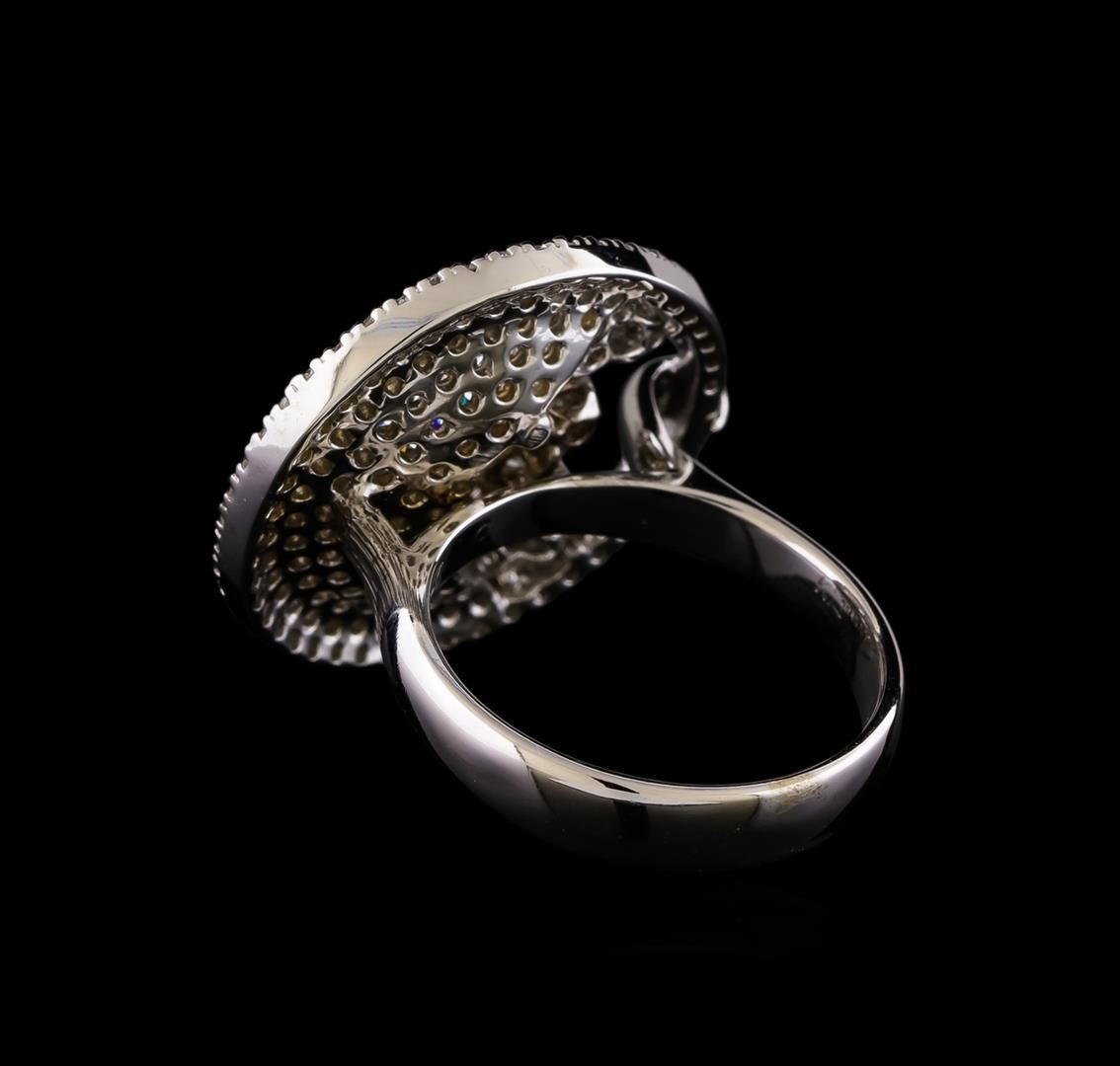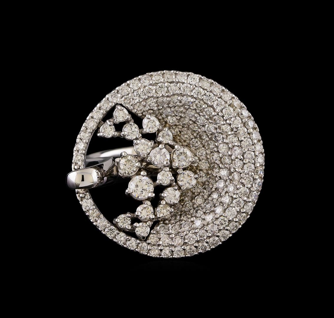 One electronically tested 14KT white gold ladies combination cast & assembled diamond ring with a bright polish finish. Identified with markings of "K14". Condition is new. Containing: One Hundred Forty-Eight prong set round brilliant cut diamonds, measuring 2.10 - 1.20 x 0.99mm (depth est.) approximate total weight of 148 Stones = 1.71ct. Clarity: SI-2 to I-2. Color: H - I, Cut is Good. All diamonds are graded in the mounting, unless otherwise stated. Total Weight of Diamonds 1.71ct. Total Weight of Ring 8.50 grams. GGL Appraised at $4,595.00.