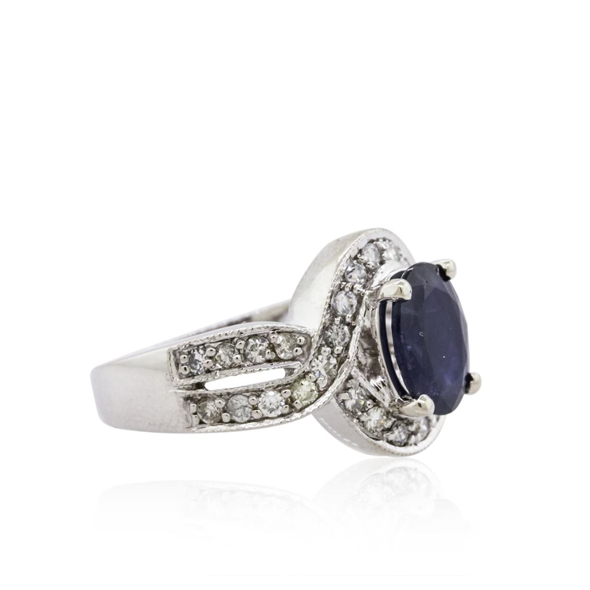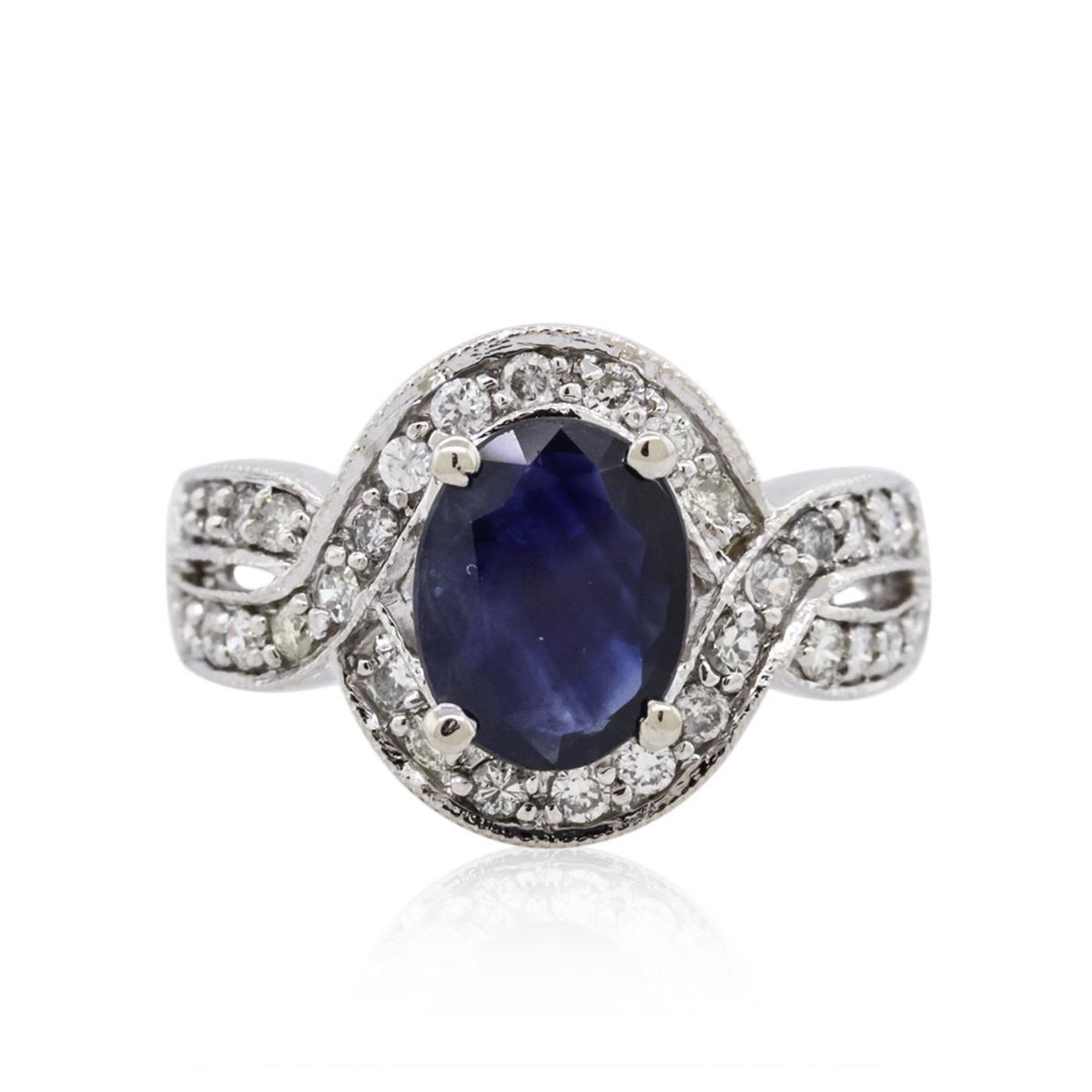 One ring featuring: 14KT white gold weighing 6.60 grams containing one prong set oval cut sapphire with a total weight of 1.73ct and pave set round cut diamonds with a total weight of 0.59cts.
