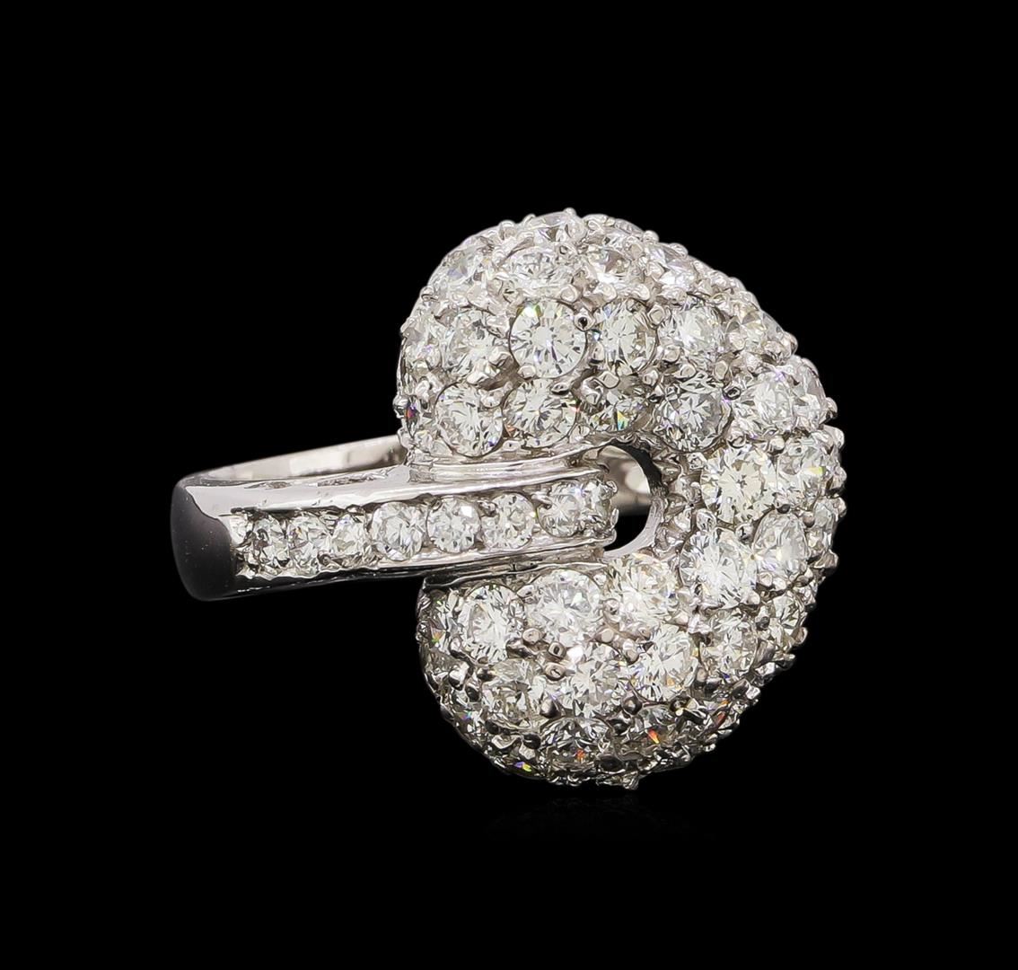 One electronically tested 14KT white gold ladies cast diamond ring with a bright polish finish. Identified with markings of "14K". Condition is new. Containing: Forty-Eight bead set round brilliant cut diamonds, measuring 2.50 - 1.80 x 1.29mm (depth est.) approximate total weight of 48 Stones = 1.74ct. Clarity: SI-1 to SI-2. Color: J, Cut is Good. All diamonds are graded in the mounting, unless otherwise stated. Total Weight of Diamonds 1.74ct. Total Weight of Ring 6.60 grams. GGL Appraised at $5,450.00.