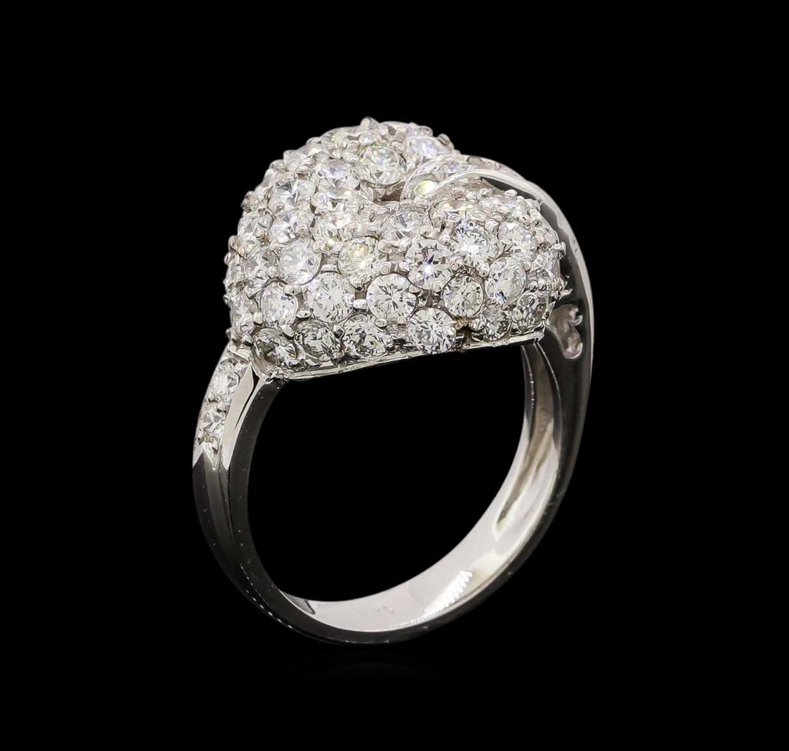 One electronically tested 14KT white gold ladies cast diamond ring with a bright polish finish. Identified with markings of "14K". Condition is new. Containing: Forty-Eight bead set round brilliant cut diamonds, measuring 2.50 - 1.80 x 1.29mm (depth est.) approximate total weight of 48 Stones = 1.74ct. Clarity: SI-1 to SI-2. Color: J, Cut is Good. All diamonds are graded in the mounting, unless otherwise stated. Total Weight of Diamonds 1.74ct. Total Weight of Ring 6.60 grams. GGL Appraised.