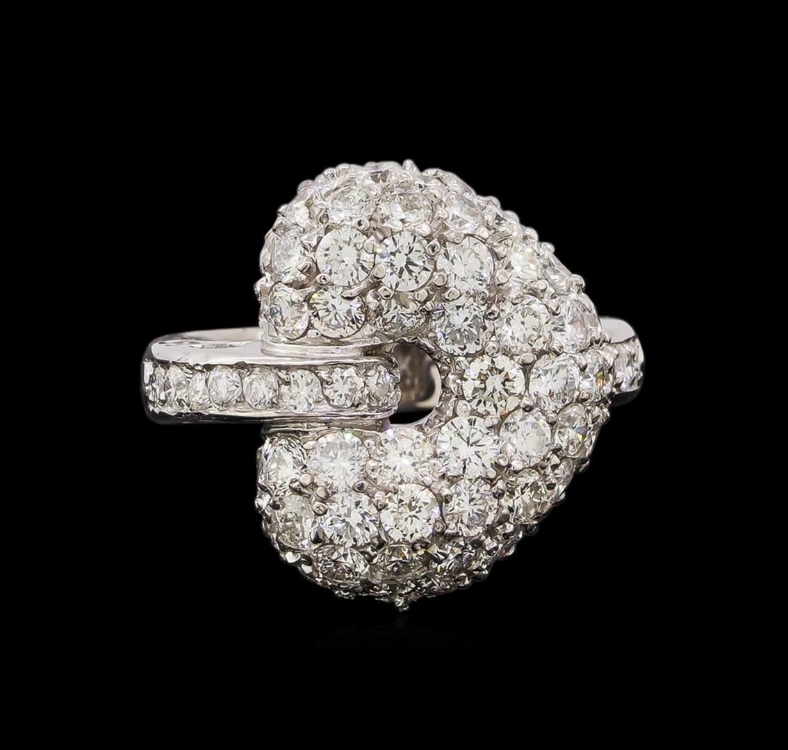 One electronically tested 14KT white gold ladies cast diamond ring with a bright polish finish. Identified with markings of "14K". Condition is new. Containing: Forty-Eight bead set round brilliant cut diamonds, measuring 2.50 - 1.80 x 1.29mm (depth est.) approximate total weight of 48 Stones = 1.74ct. Clarity: SI-1 to SI-2. Color: J, Cut is Good. All diamonds are graded in the mounting, unless otherwise stated. Total Weight of Diamonds 1.74ct. Total Weight of Ring 6.60 grams. GGL Appraised.