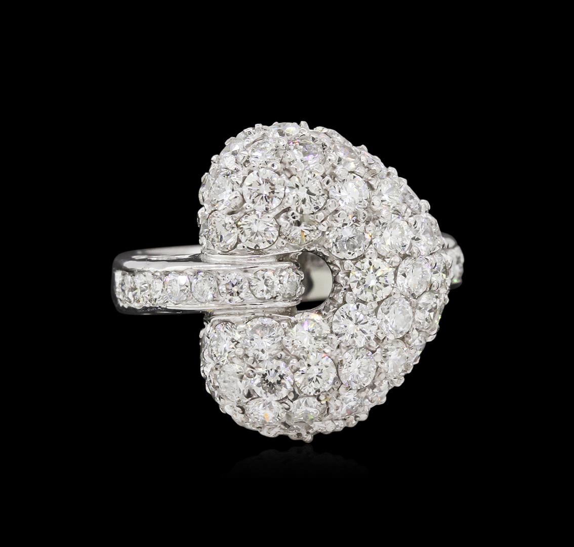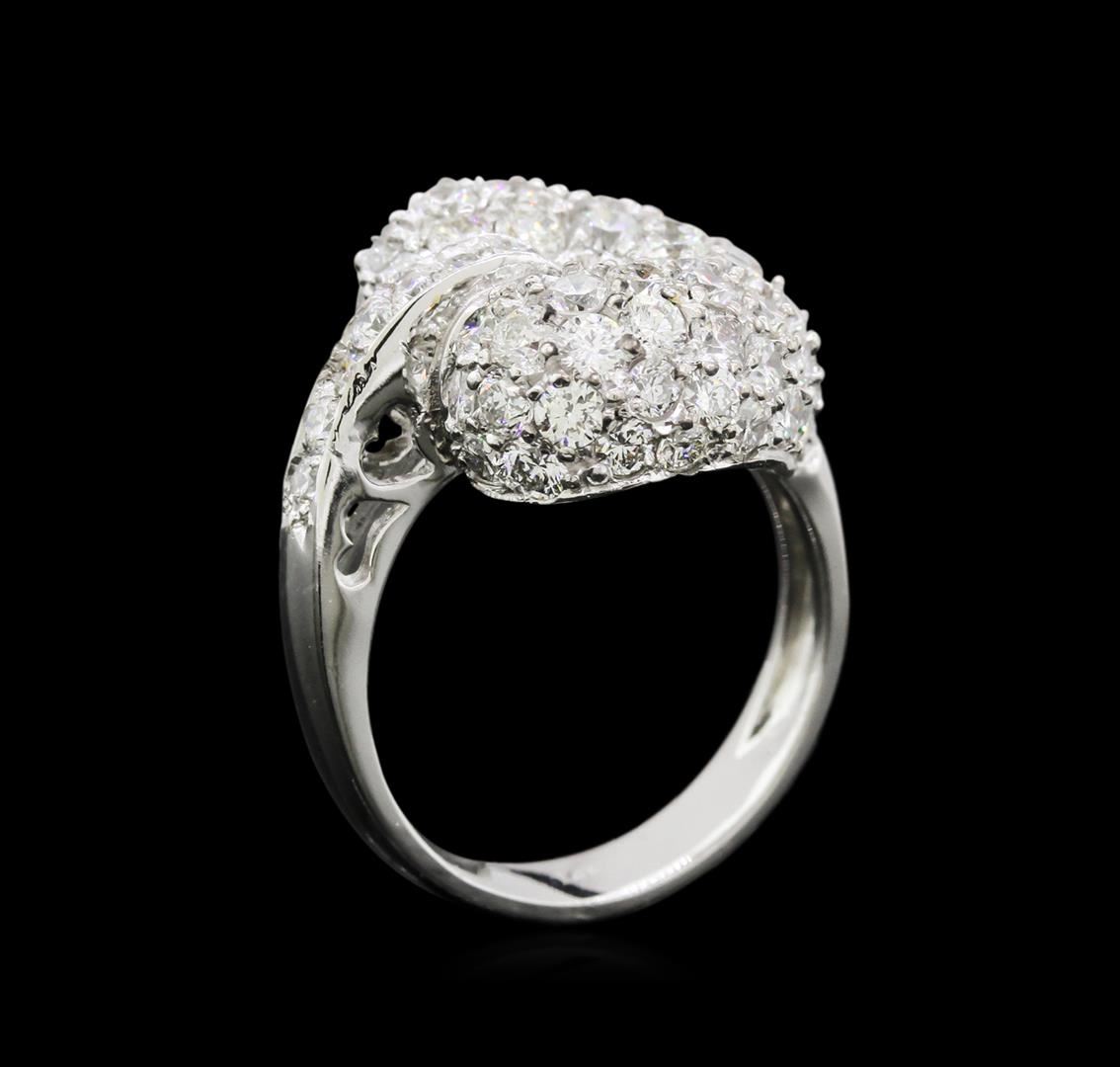 One electronically tested 14KT white gold ladies cast diamond ring with a bright polish finish. Identified with markings of "14K". Condition is new. Containing: Forty-Eight bead set round brilliant cut diamonds, measuring 2.50 - 1.80 x 1.29mm (depth est.) approximate total weight of 48 Stones = 1.74ct. Clarity: SI-1 to SI-2. Color: J, Cut is Good. All diamonds are graded in the mounting, unless otherwise stated. Total Weight of Diamonds 1.74ct. Total Weight of Ring 6.60 grams. GGL Appraised at $5,450.00.