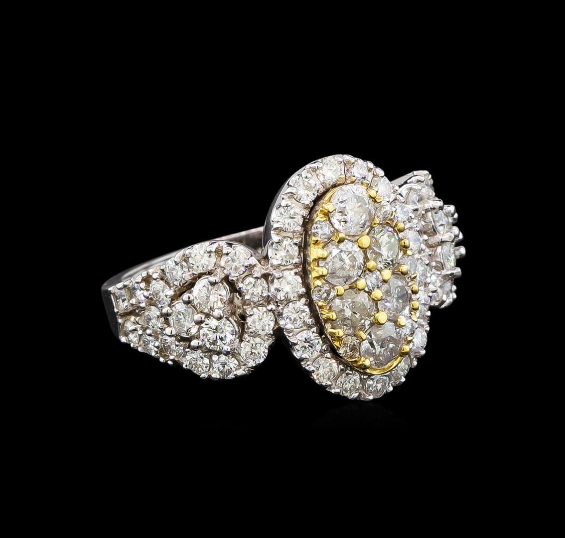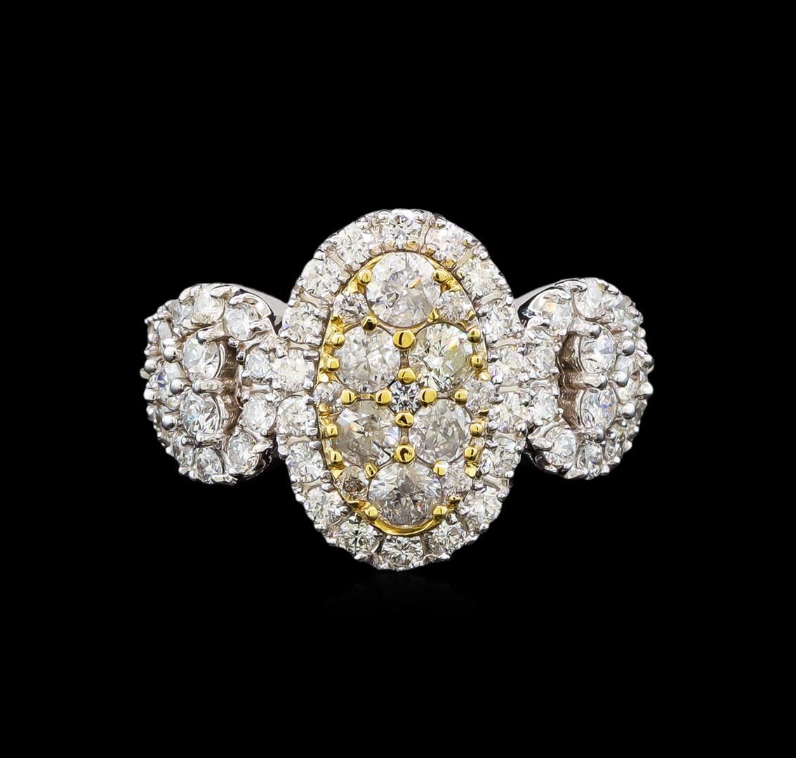 One electronically tested 14KT white gold ladies cast diamond ring with a bright polish finish. Identified with markings of "14K". Condition is new. Containing: Six prong set round brilliant cut diamonds, measuring 3.20 - 3.20 x 1.92mm (depth est.) approximate total weight of 6 Stones = 0.72ct. Clarity: I-1 to I-2. Color: J - K, Cut is Good. Fifty-Three prong set round brilliant cut diamonds, measuring 2.30 - 1.20 x 1.05mm (depth est.) approximate total weight of 53 Stones = 1.04ct. Clarity: SI-1 to I-1. Color: I - J, Cut is Good. All diamonds are graded in the mounting, unless otherwise stated. Total Weight of Diamonds 1.76ct. Total Weight of Ring 6.30 grams. GGL Appraised at $4,910.00.