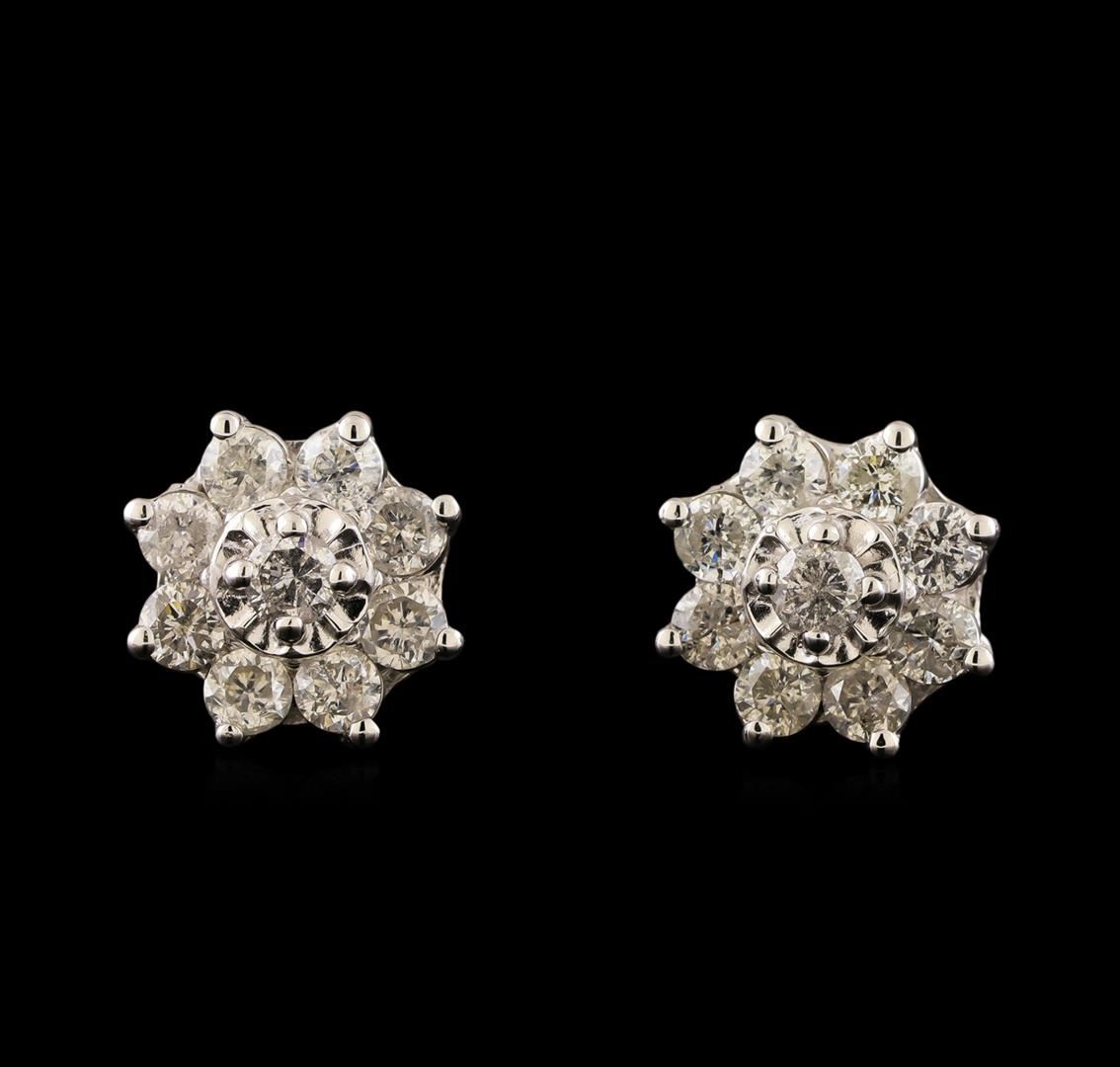 One pair electronically tested 14KT white gold ladies combination cast & assembled diamond earrings with friction posts with a bright polish finish. Condition is new. Containing: Eighteen prong set round brilliant cut diamonds, measuring 3.00 - 3.00 x 1.80mm (depth est.) approximate total weight of 18 Stones = 1.78ct. Clarity: I-2 to I-3. Color: I - J, Cut is Good. All diamonds are graded in the mounting, unless otherwise stated. Total Weight of Diamonds 1.78ct. Total Weight of Earrings 4.80 grams. GGL Appraised at $4,745.00.
