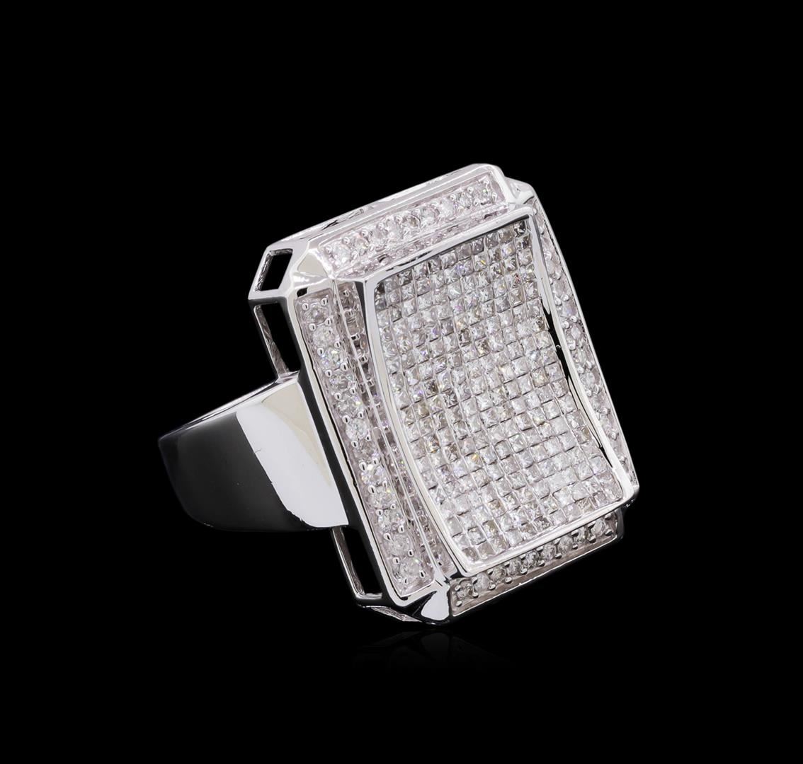 One electronically tested 14KT white gold man's combination cast & assembled ring with a bright polish finish. Condition is new. Identified with markings of "14K". Containing: One Hundred Eighty pave' set princess cut diamonds, measuring 1.10 x 1.10 x 0.83mm (depth est.) approximate. Total Weight of 180 Stones = 1.48ct. Clarity: I-1 to I-2. Color: H - I, Cut is Good. Forty-Two prong set round brilliant cut diamonds, measuring 1.30 - 1.30 x 0.78mm (depth est.) approximate. Total Weight of 42 Stones = 0.34ct. Clarity: I-1 to I-2. Color: H - I, Cut is Good. Total Weight of Diamonds 1.81ct. Total Weight of Ring 12.40gm. GGL Appraised at $8,595.00.