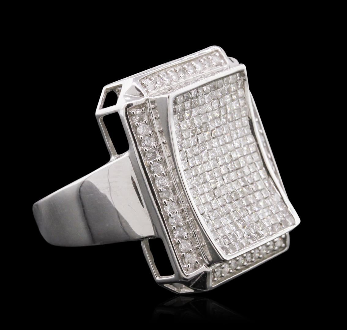 One electronically tested 14KT white gold man's combination cast & assembled ring with a bright polish finish. Condition is new. Identified with markings of "14K". Containing: One Hundred Eighty pave' set princess cut diamonds, measuring 1.10 x 1.10 x 0.83mm (depth est.) approximate. Total Weight of 180 Stones = 1.48ct. Clarity: I-1 to I-2. Color: H - I, Cut is Good. Forty-Two prong set round brilliant cut diamonds, measuring 1.30 - 1.30 x 0.78mm (depth est.) approximate. Total Weight of 42 Stones = 0.34ct. Clarity: I-1 to I-2. Color: H - I, Cut is Good. Total Weight of Diamonds 1.81ct. Total Weight of Ring 12.40gm. GGL Appraised at $8,595.00.