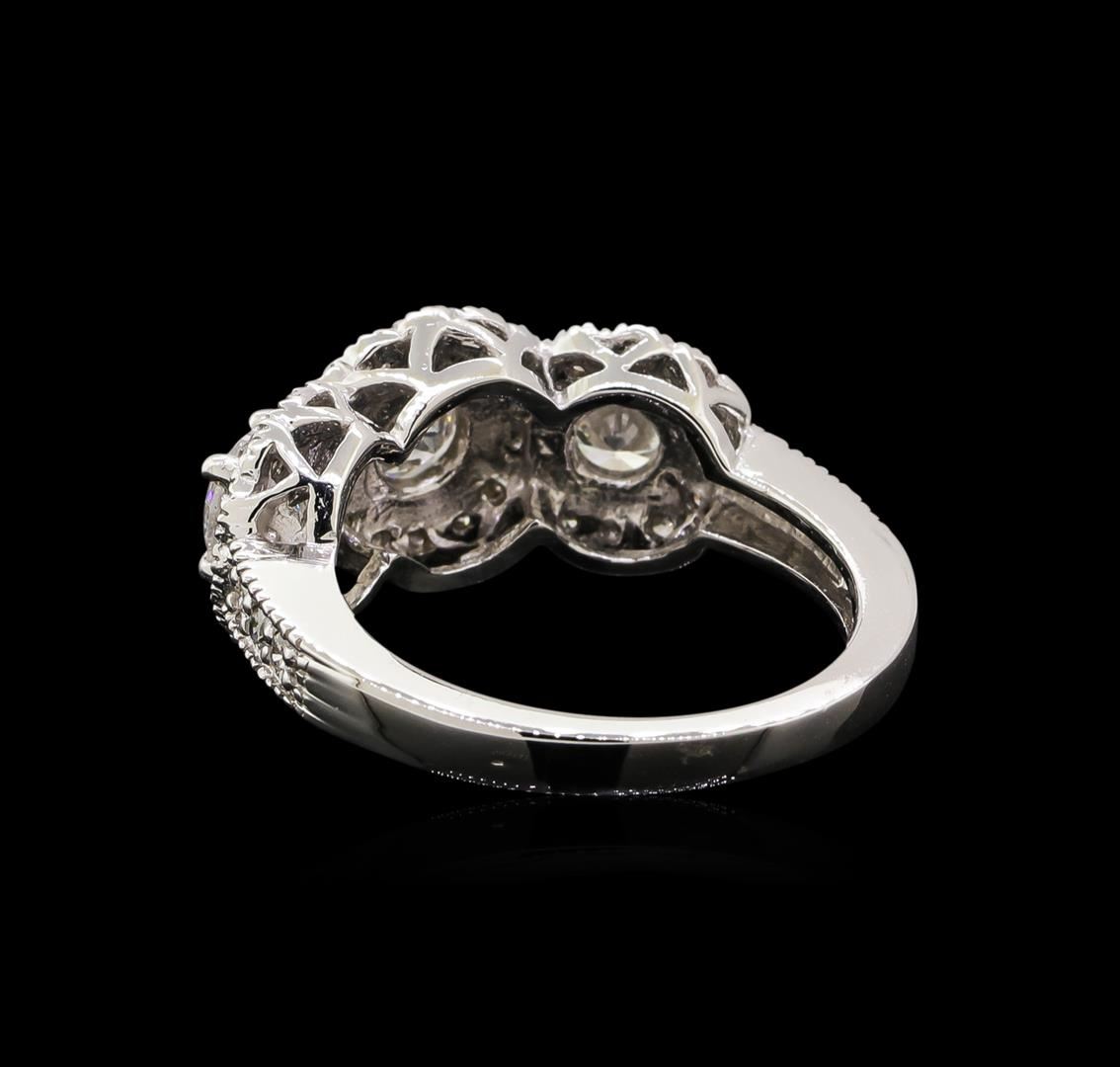One electronically tested 14KT white gold ladies combination cast & assembled diamond engagement ring with a bright polish finish. Identified with markings of "14K". Condition is new. Containing: One prong set round brilliant cut diamond, measuring 5.50 - 5.50 x 3.30mm (depth est.) approximate weight of 0.61ct. Clarity: I-2. Color: I, Cut is Good. Two prong set round brilliant cut diamonds, measuring 5.00 - 5.00 x 3.00mm (depth est.) approximate total weight of 2 Stones = 0.92ct. Clarity: I-1. Color: H, Cut is Good. Thirty-Eight prong set round brilliant cut diamonds, measuring 1.30 - 1.30 x 0.78mm (depth est.) approximate total weight of 38 Stones = 0.30ct. Clarity: SI-2 to I-1. Color: H - I, Cut is Good. All diamonds are graded in the mounting, unless otherwise stated. Total Weight of Diamonds 1.83ct. Total Weight of Engagement Ring 6.20 grams. GGL Appraised at $7,505.00.