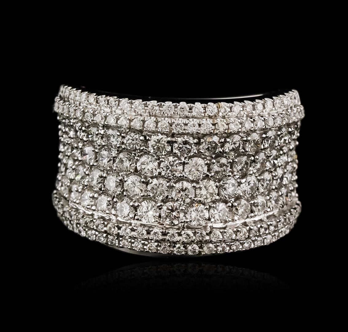 One electronically tested 14KT white gold ladies cast diamond ring with a tapered shank with a bright polish finish. Identified with markings of "14K". Condition is new. Containing: Sixty prong set round brilliant cut diamonds, measuring 1.90 - 1.90 x 1.14mm (depth est.) approximate total weight of 60 Stones = 1.51ct. Clarity: SI-1 to I-1. Color: H - I, Cut is Good. All diamonds are graded in the mounting, unless otherwise stated. One Hundred Six prong set round brilliant cut diamonds, measuring 1.00 - 1.00 x 0.60mm (depth est.) approximate total weight of 106 Stones = 0.38ct. Clarity: SI-2. Color: G - H. All diamonds are graded in the mounting, unless otherwise stated. Total Weight of Diamonds 1.89ct. Total Weight of Ring 8.00 grams. GGL Appraised at $5,245.00.