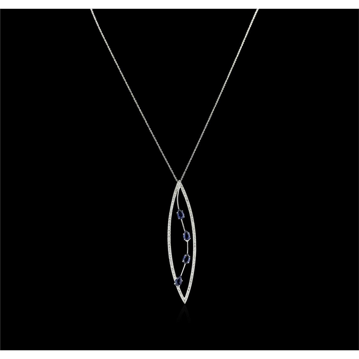 One pendant with chain featuring: 14KT white gold weighing 7.30 grams containing sapphires with a total weight of 1.92ct and prong set round diamonds with a total weight of 0.83ct.